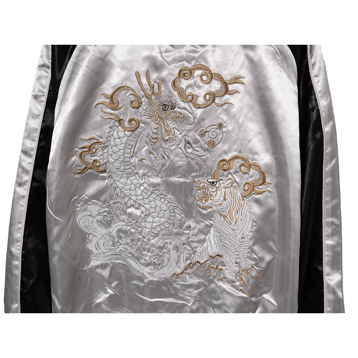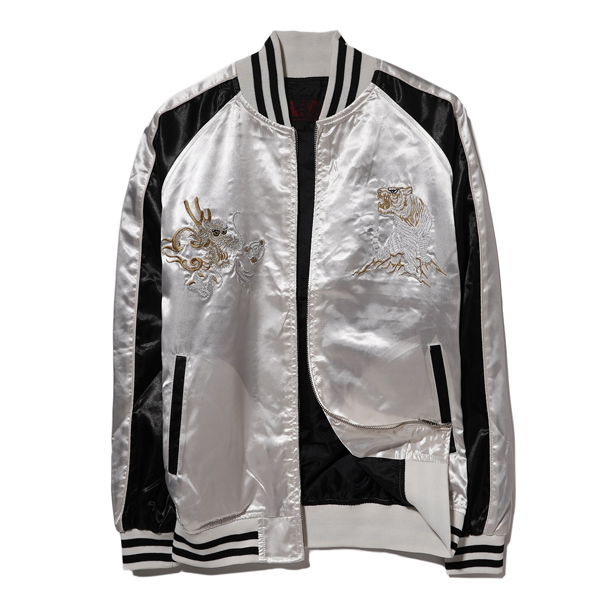 | さらりと羽織れるストリート定番スカジャン。 程よい厚さとサラッとした高級感のあるサテン生地、 フロントとバックに施された丁寧な刺繍使いがポイントで、アメカジでは定番のスカジャンを現代っぽくタイトなサイズ感に。 ボディはカラー配色切り替えで仕上げた大人っぽさのあるデザインなど凝ったディティール。 これからの時期に最適、ライトアウターとして活躍してくれる1着。 左胸内側裏ポケットあり、中綿ナシ。 【カラー◆Color】 白龍虎 / SILVER 【サイズ◆Size】 L 【寸法◆Size】 S size : 身幅51cm 肩幅(ラグランにより数値なし) 着丈59cm 裄丈80cm M size : 身幅53cm 肩幅(ラグランにより数値なし) 着丈61cm 裄丈82cm L size : 身幅55cm 肩幅(ラグランにより数値なし) 着丈63cm 裄丈84cm XL size : 身幅57cm 肩幅(ラグランにより数値なし) 着丈65cm 裄丈86cm 【素材◆Material】 ポリエステル 100% ※現物に近いカラーに撮影しておりますがモニターカラー設定、または印象によりカラー誤差があることをご理解よろしくお願い致します。 | ||