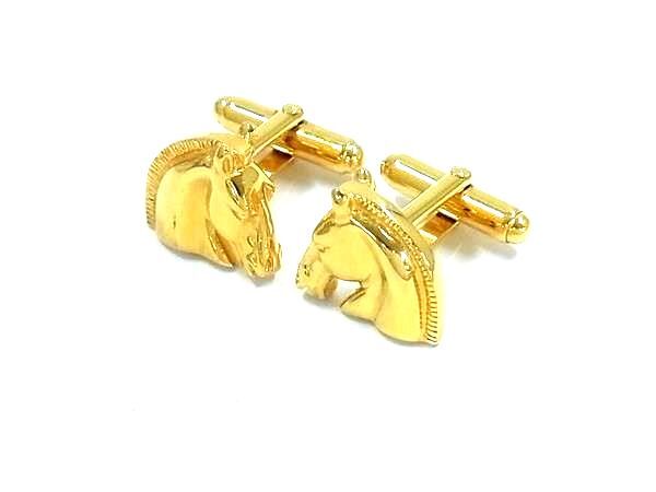■美品■ HERMES エルメス ホース 馬 カフスボタン カフリンクス アクセサリー メンズ ビジネス 紳士 ゴールド系 FP7287