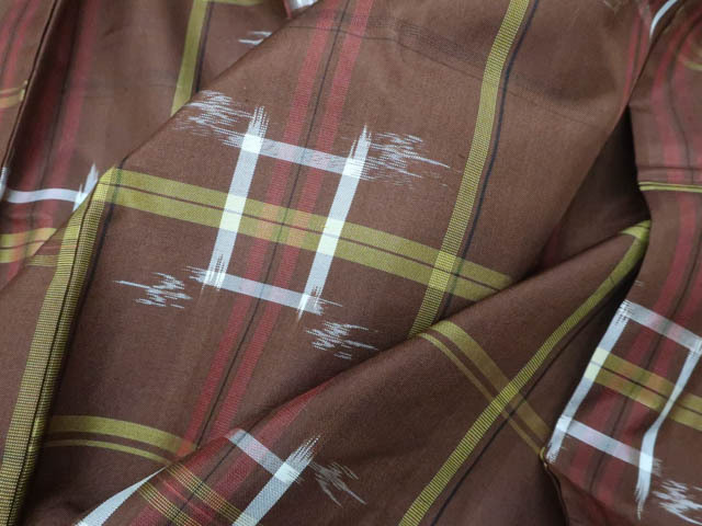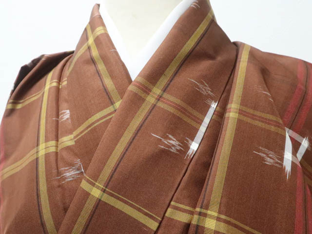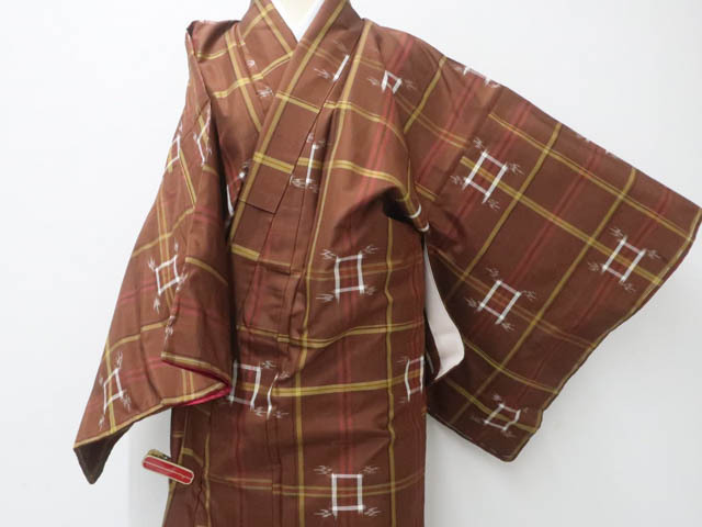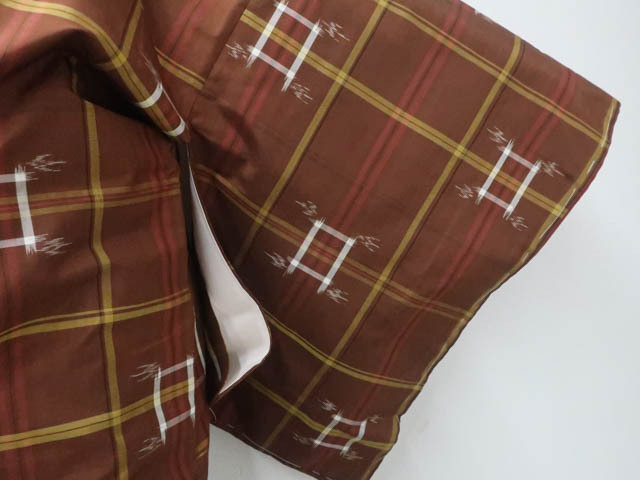 リサイクル商品のため、上前薄汚れがございます。 衿裏・胴裏スナップボタン汚れがございますが着用可能なお品です。 地色は茶です。 1枚目の画像が近いお色かと思われます。 素材は正絹です。 |