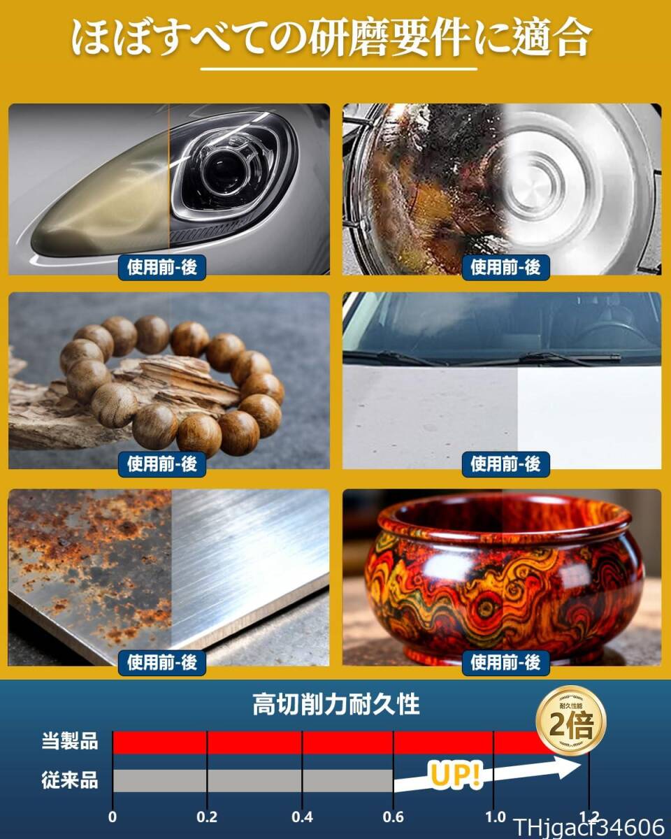 【多様な用途に対応】 ヘッドライト磨き、金属板の塗装調整、シンク研磨、陶器・ガラス・木材・金属の加工、木製家具の表面調整、サビ落としなど、さまざまなシーンでご利用いただけます。