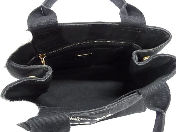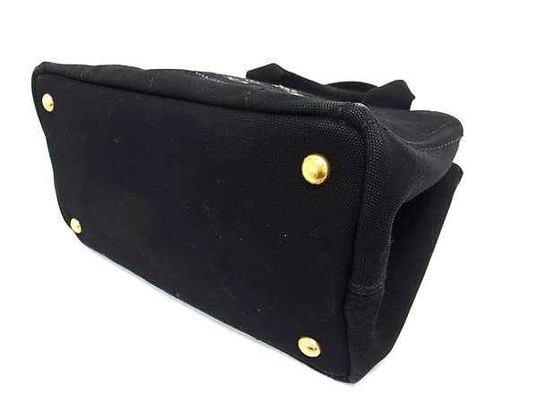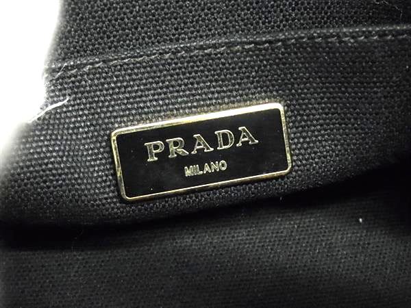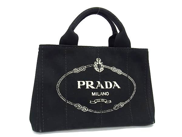 1円 PRADA プラダ ミニカナパ キャンバス ハンドバッグ トートバッグ レディース ブラック系 FR4776