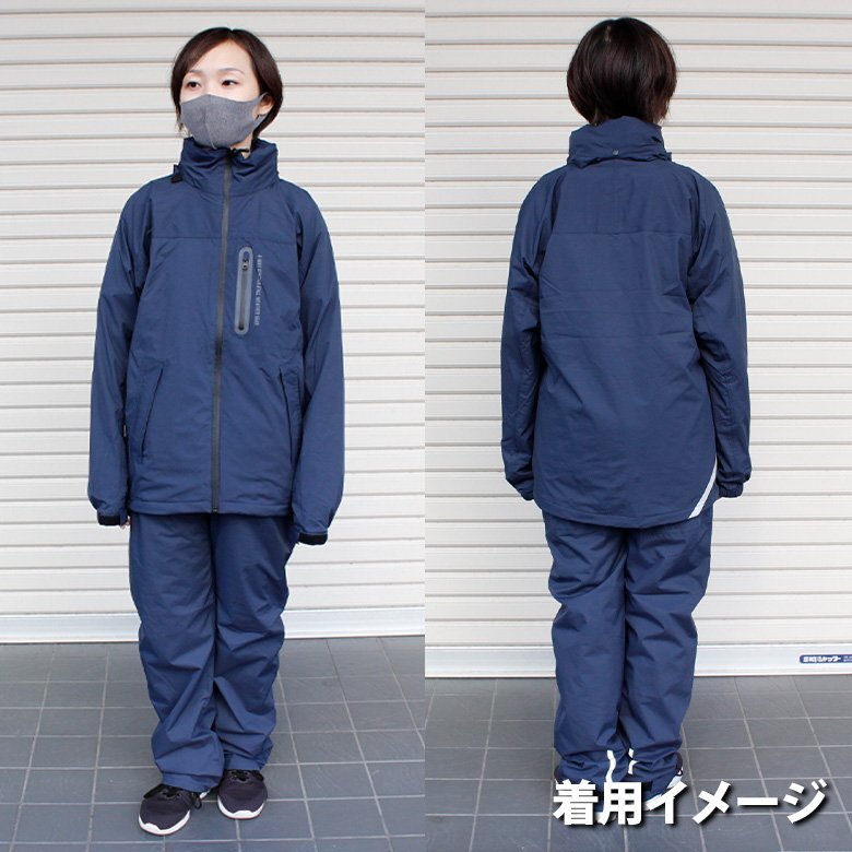 レインウェア 防寒 上下セット(ネイビー M) 裏起毛 ウインドブレーカー キャンプ フィッシング アウトドア レイン 防寒ズボン