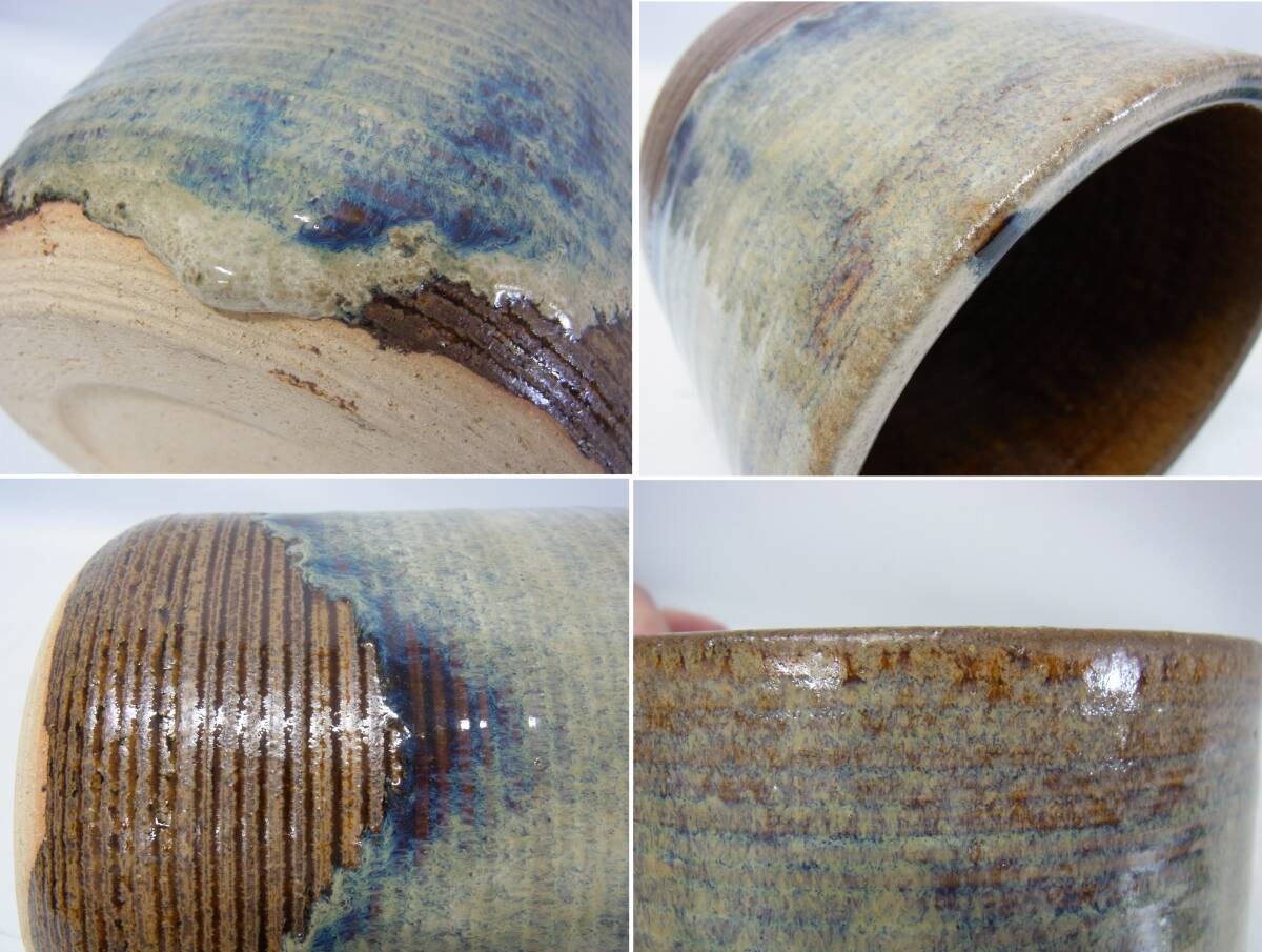 | 譲り受けた物で、本来の状態含め詳細は不明です。 画像にてお詳しい方、お分かりになる方のご判断でお願い致します。 くすみなどありますが、ひどくいちじるしい汚れやキズはなく、 使用に問題があるようなヒビやワレも見当たりませんでした。 ※共箱はシミや汚れなど保管感ございます。 現状でのお渡しとなりますので、洗いやお手入れなど前提のうえ、 十分なご検討をお願い致します。 状態に関しましては画像でご確認いただき、ご判断をお願い致します。 気になる点はご入札前にご質問ください。 ※専門的な知識がありませんので、ご質問内容によっては お答え出来ない場合があるかもしれません。予めご了承ください。 上記内容含め、茶道具の中古、経年保管品になりますので、 ご理解いただける方のご入札いただけましたら幸いです。 撮影した照明により、色合いが多少違って見えるかもしれませんが、ご了承ください。 【サイズ】※蓋含まず 口縁直径約15.4センチ 高さ約14.3センチ ※素人採寸です。多少の誤差はご了承くださいませ。 ※画像では高さ約22cmのティッシュ箱と比較もしております。 【発送方法】 ・ゆうパック/80サイズ ---------------------------------------------------------------------- ※ゆうパックの送料はお届け地域によって送料が異なりますので、 気にされる方は必ずご入札前に「質問欄」よりお問い合わせください。 | |||