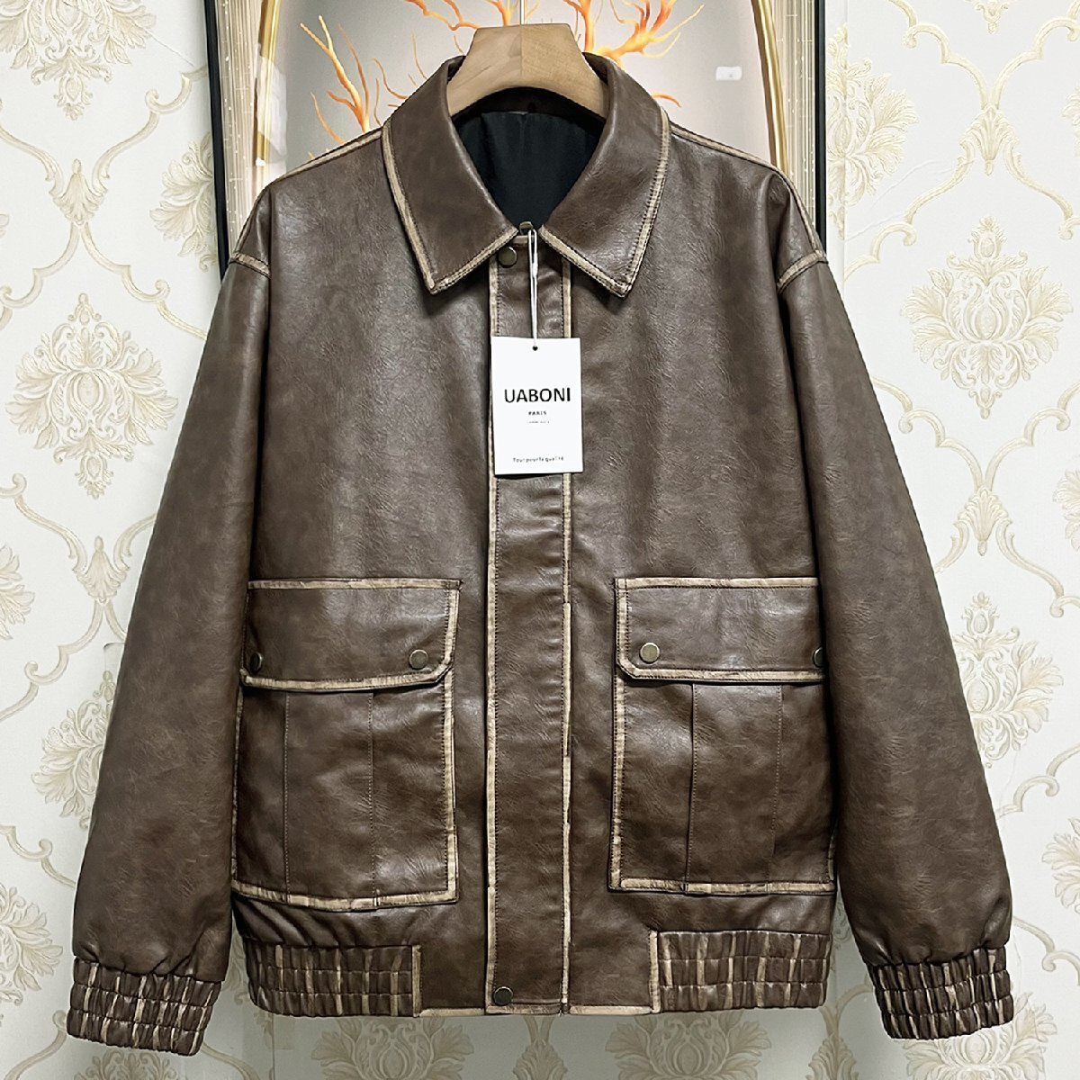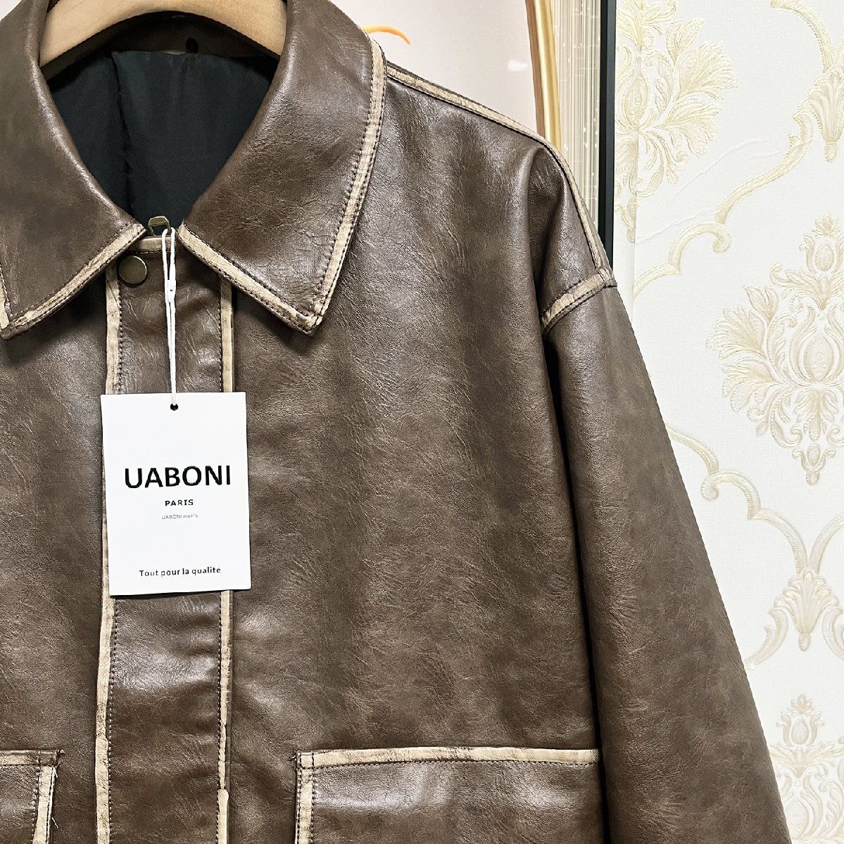 最高峰EU製&定価12万◆UABONI*ユアボニ*レザージャケット*フランス*パリ発◆上質牛革 ゆったり ヴィンテージ 革ジャン ライダース 2XL/52