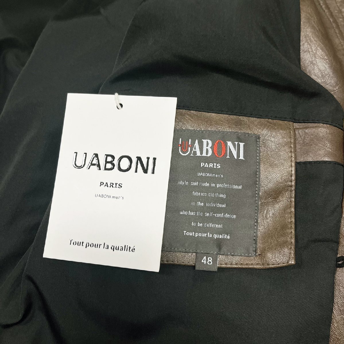 最高峰EU製&定価12万◆UABONI*ユアボニ*レザージャケット*フランス*パリ発◆上質牛革 本革 柔らか ゆったり ヴィンテージ 革ジャン ライダース 2XL/52サイズ