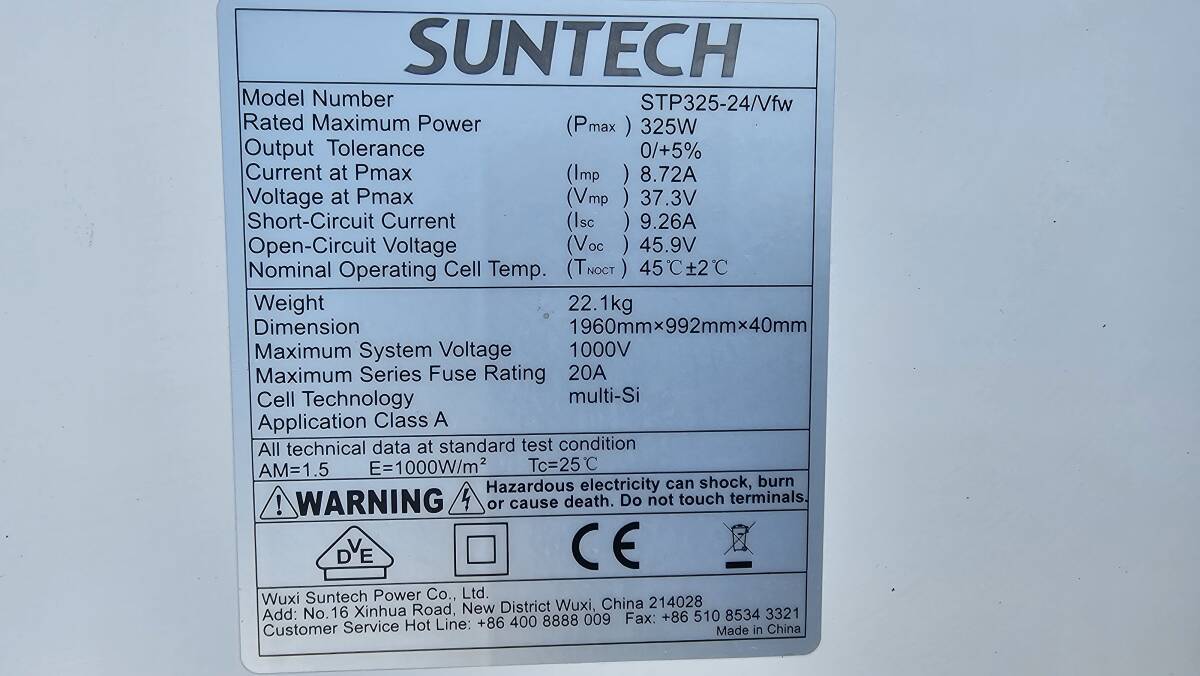 ★ 中古美品 ★ SUNTECH(サンテック)STP325-24/Vfw(325Wパネル) ソーラーパネル 【即決価格】