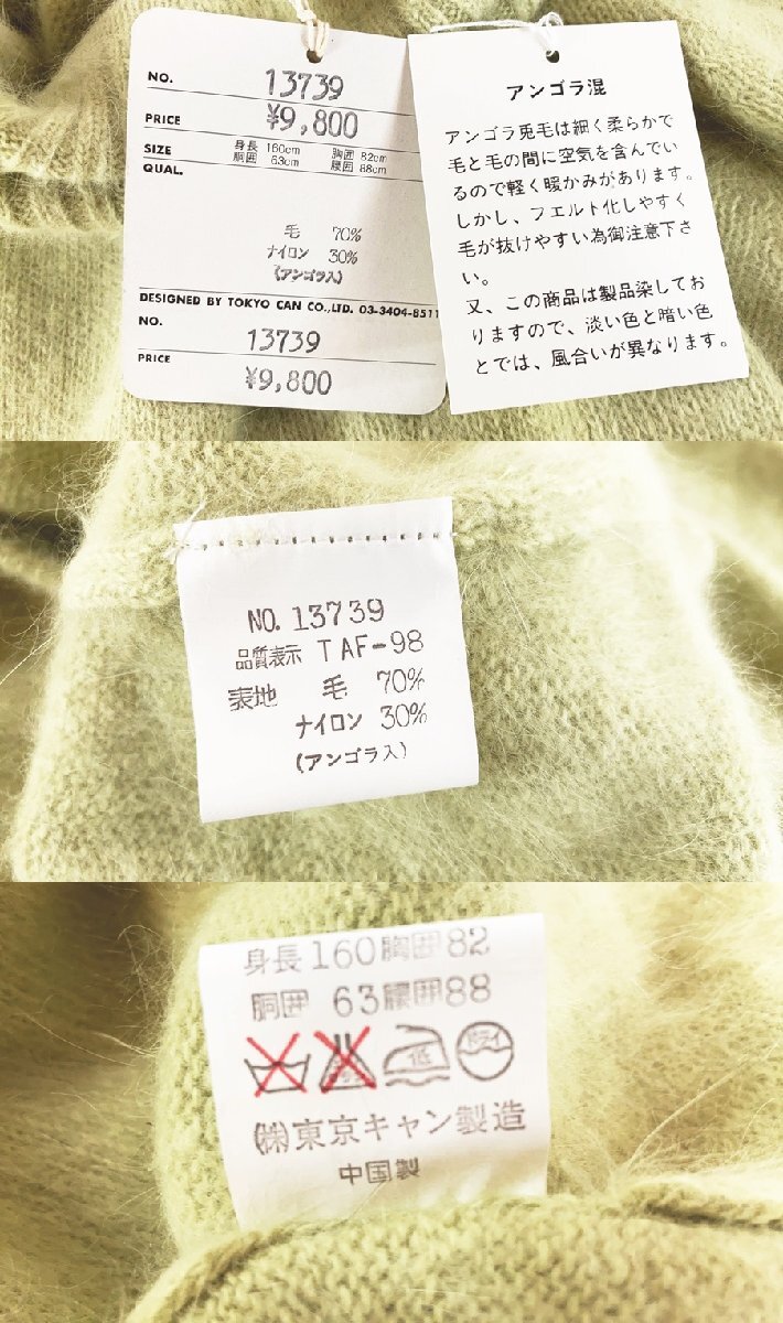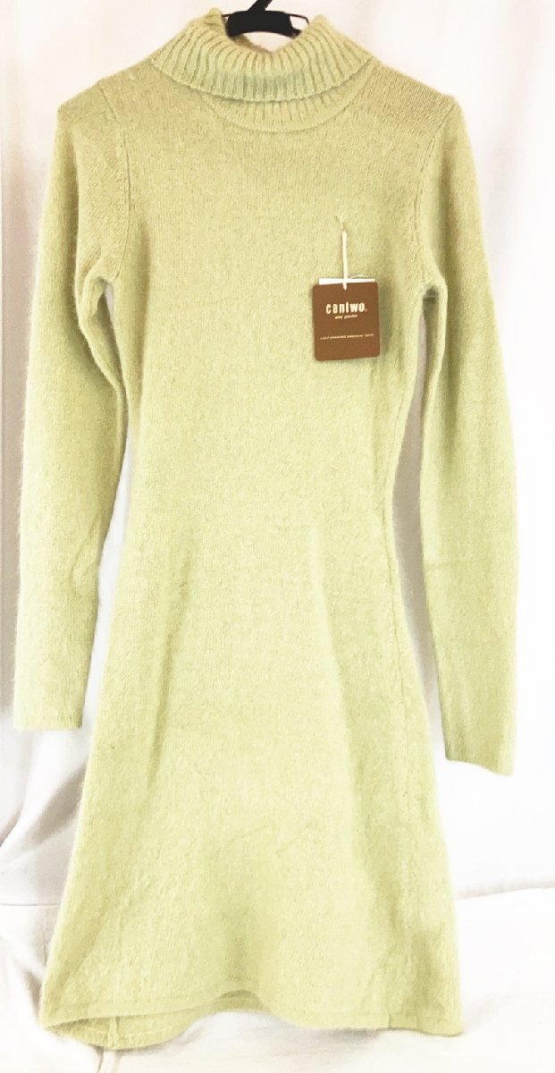 cantwo キャンツー ライムグリーン系 アンゴラ混 タートルネック 長袖ニット Mぐらい 160-82-63-88 タグ付未使用品 QV-8