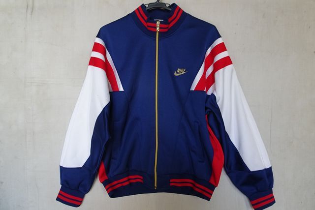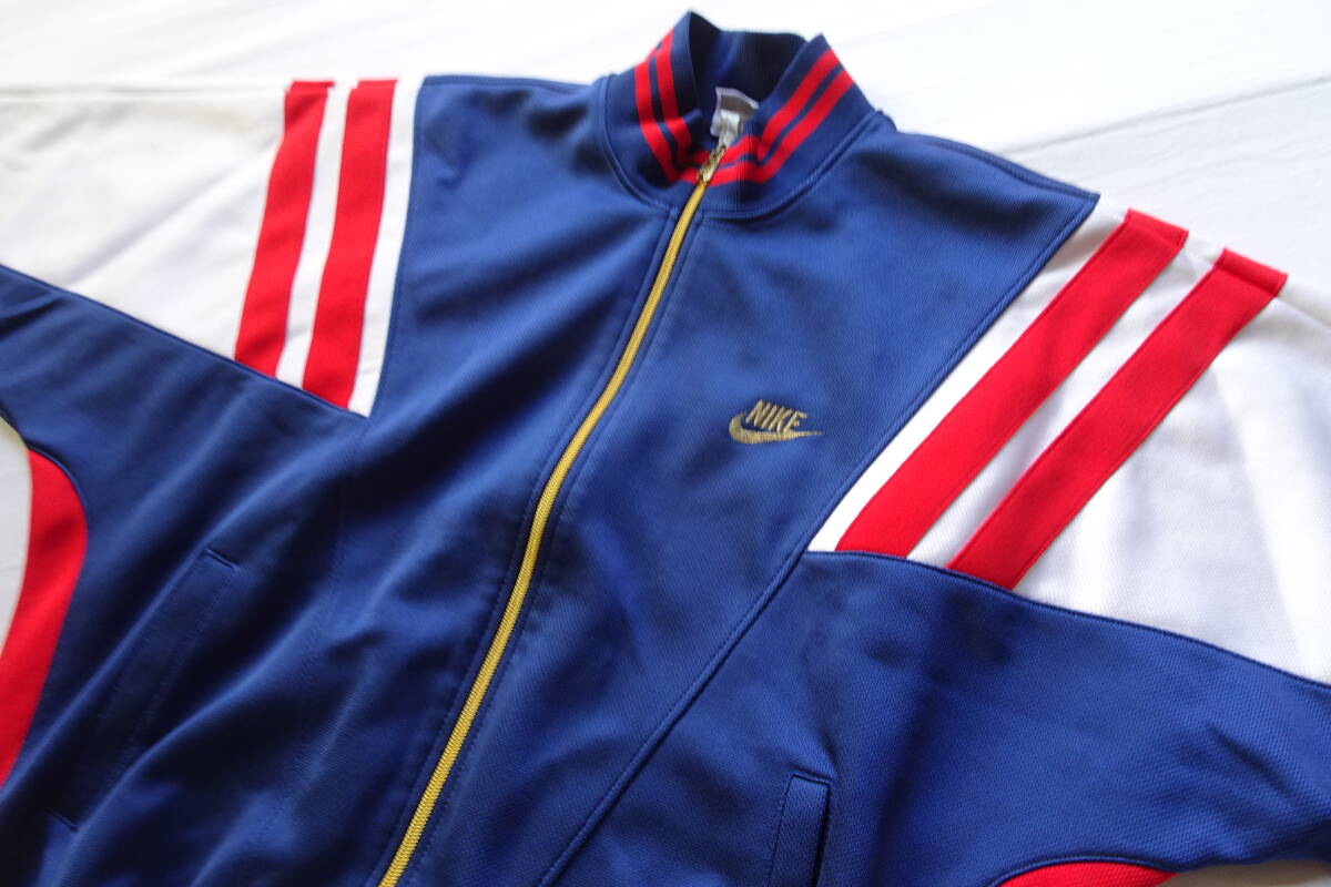 90’sNIKE/ナイキ/長袖トラックジャケット/ジャージ素材/前ジップアップ/赤・白切替/ロゴししゅう/スポーツ/紺/ネイビー/XLサイズ(10/2R7)