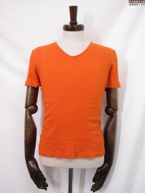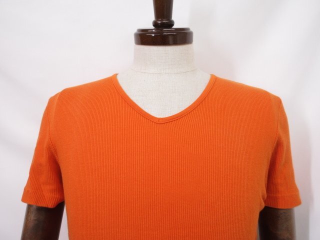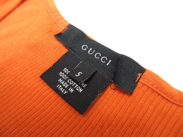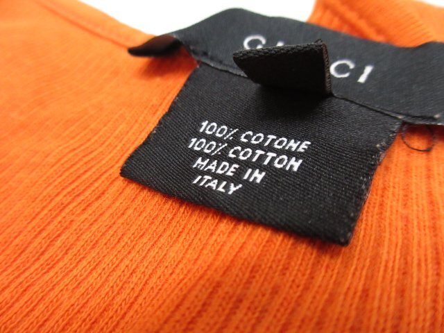 【グッチ GUCCI】コットン100% Vネック ハイゲージ 半袖リブニット ニットソー (メンズ/レディース)S オレンジ系 イタリア製 ◇17MN6202◇