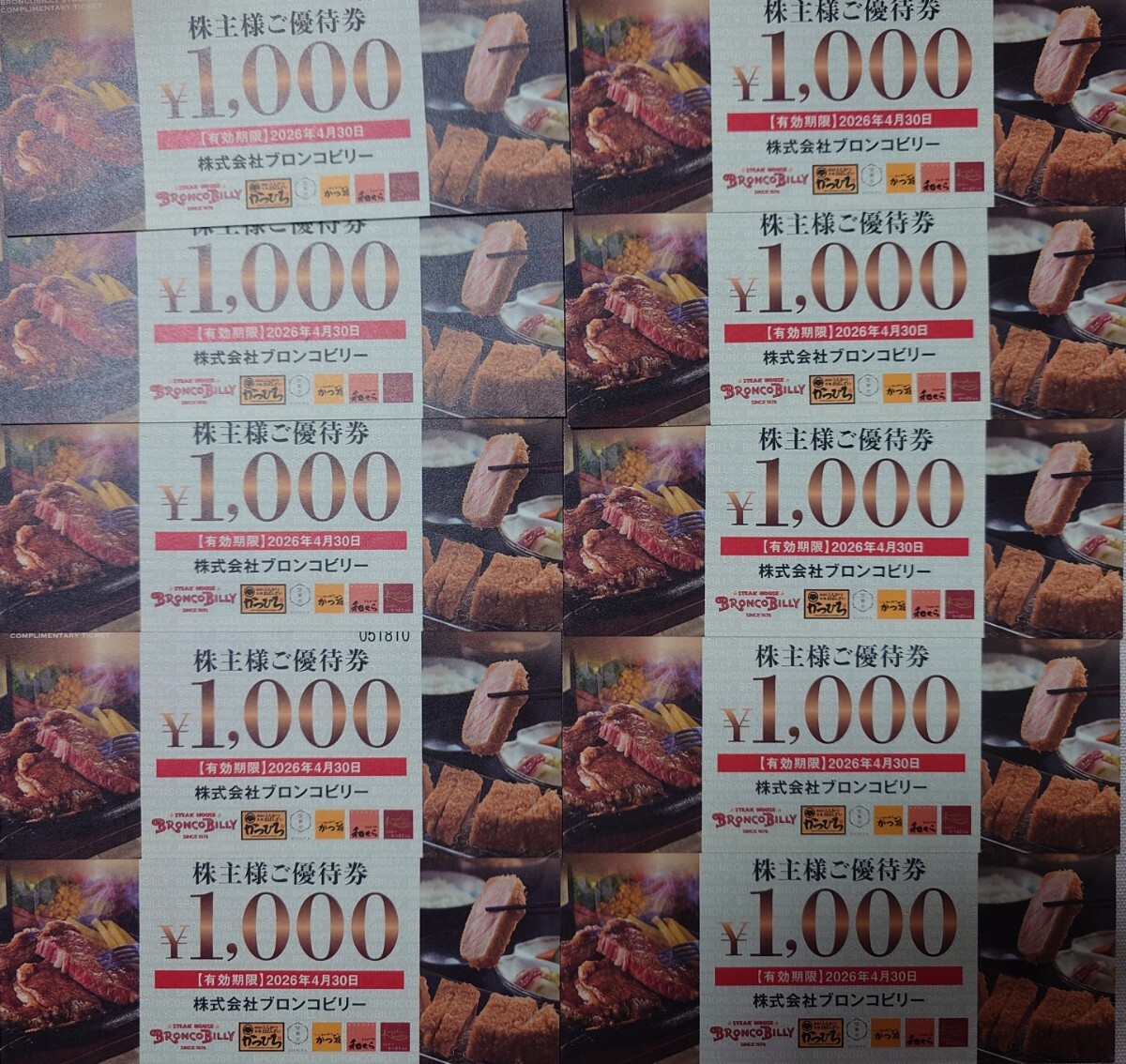 ブロンコビリー株主優待券10000円分です。