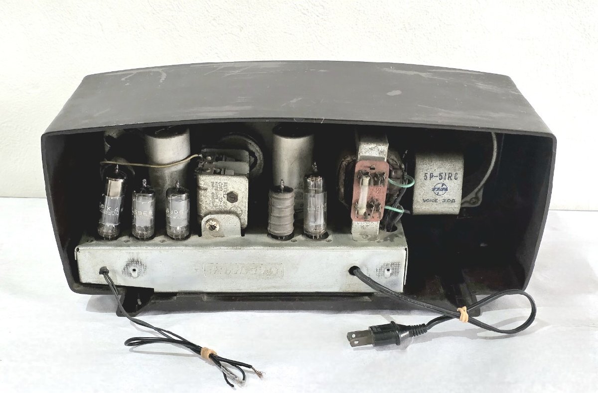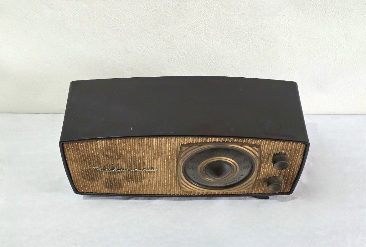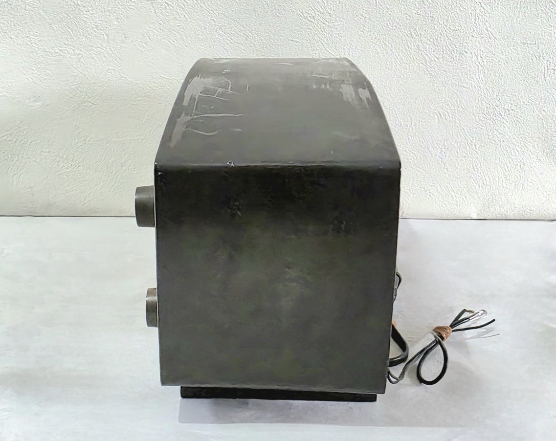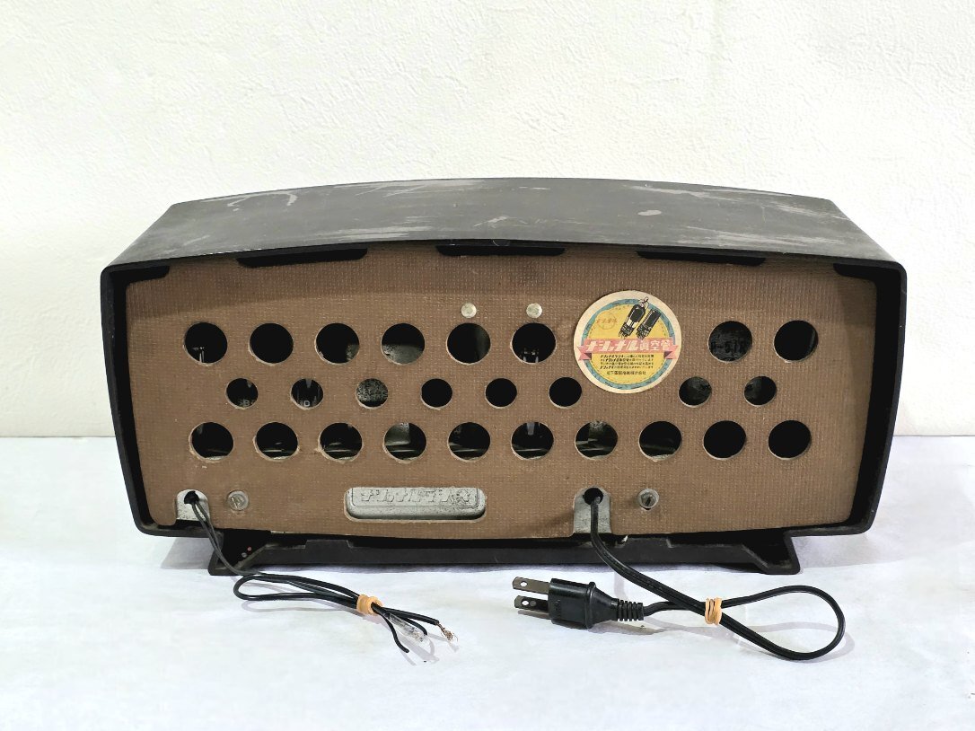 商品説明 1950年頃の昭和レトロなナショナルの真空管ラジオです。 オールネットの右半分を大きな丸形ダイアルが占めた極めて斬新な人気のデザインです。 レトロ品コレクションや部品を取り出すのにいかがでしょうか。 詳細 ●サイズ:奥行13.5cm、幅36cm、高さ17cm ●動 作:動作確認済み ●ランク:ヴィンテージランク ●コンディション:上部や内部・前面など全体的に傷、汚れがあります。 ダイヤル部分のライトは点灯せず、メモリが見えません。 電源コードを長いものにするとノイズが入ってしまう為、短いものに交換しました。 アンテナケーブルにテープの貼り付けがあります。 当時物のため、現状でのお渡しとなります。 |