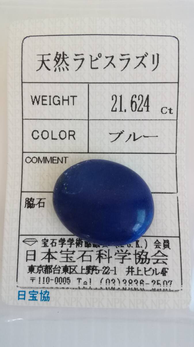 天然 ラピスラズリ ルース 22.5x18.3x7mm、21.624ct ソーティング付き 難あり