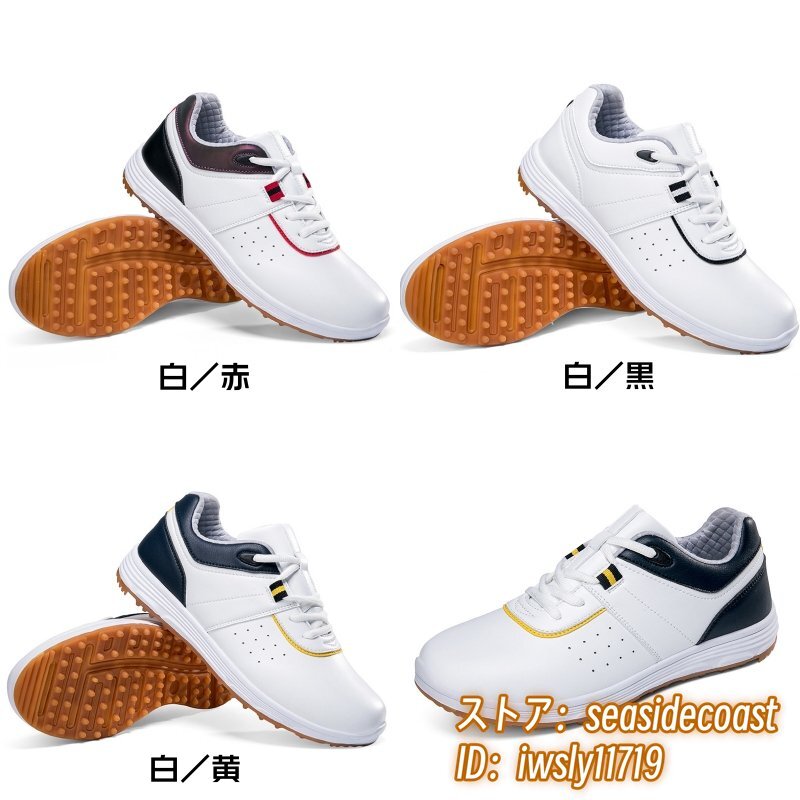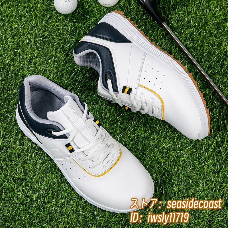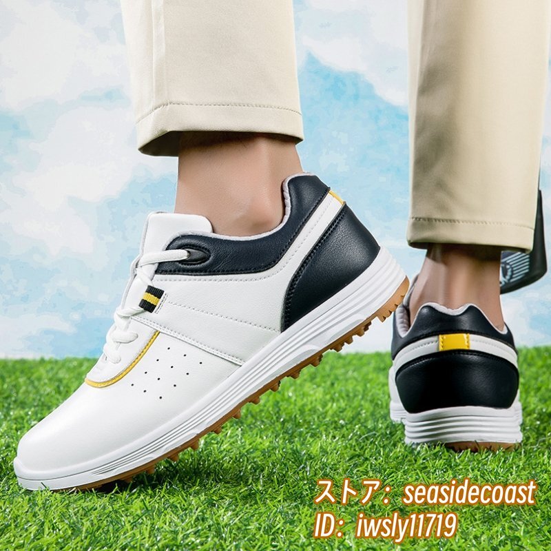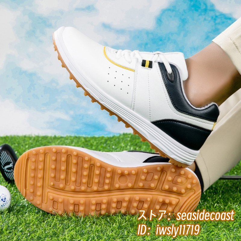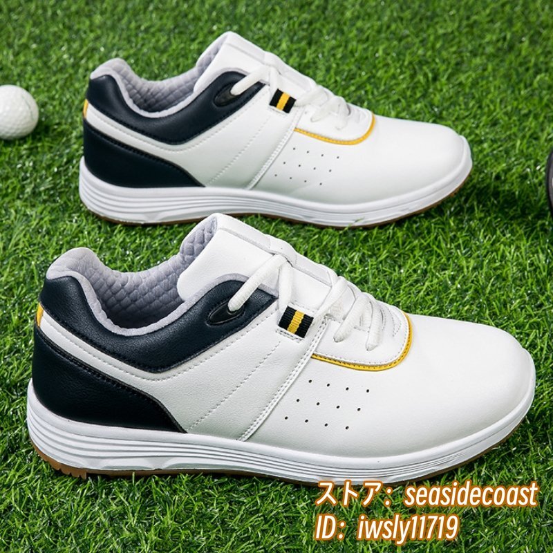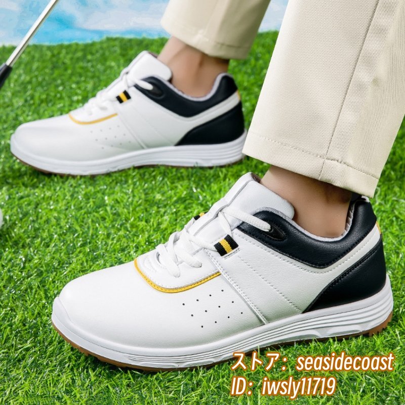 新品特売■ゴルフシューズ Golf shoes メンズ 紳士 スニーカー スポーツシューズ 運動靴 グラデーション 幅広 防滑 耐磨 撥水 白/黄 24.5cm