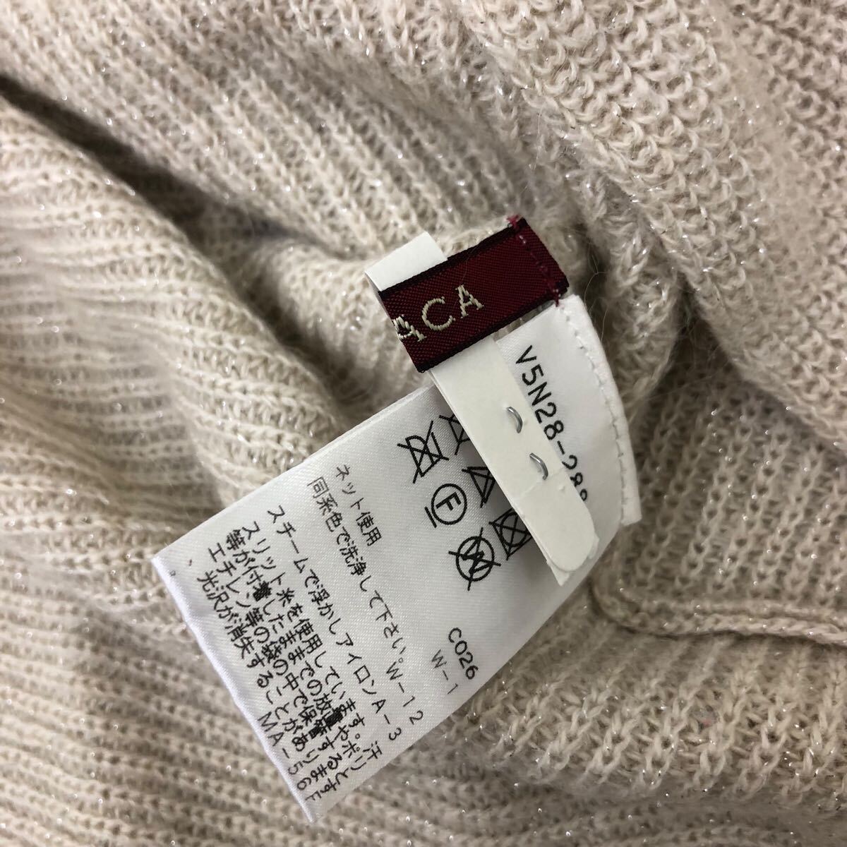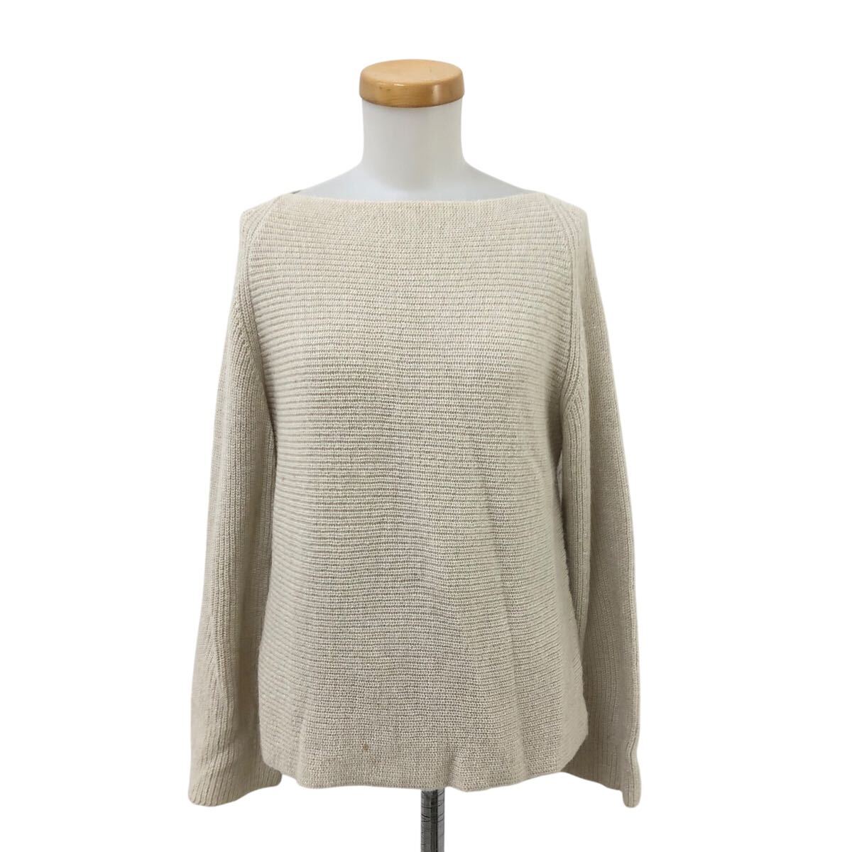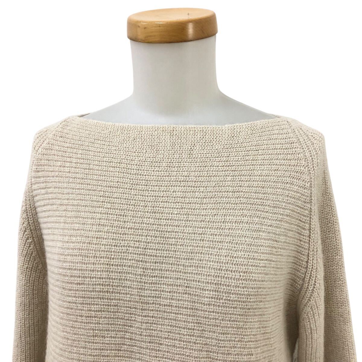 10Nm326-4 AMACA アマカ カシミヤ混 長袖 プルオーバー ニット セーター トップス ラメ ベージュ レディース 38