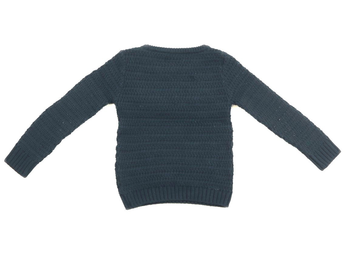 厚手のアクリル・ウールニット地です。白い毛玉が袖をはじめとして広範囲にあります。普段使いにいかがでしょうか。