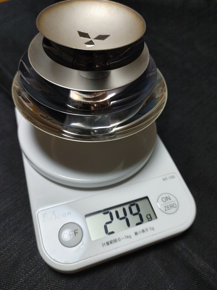 総重量約249グラムです。家庭用の量りの為、多少の誤差はご了承下さい。