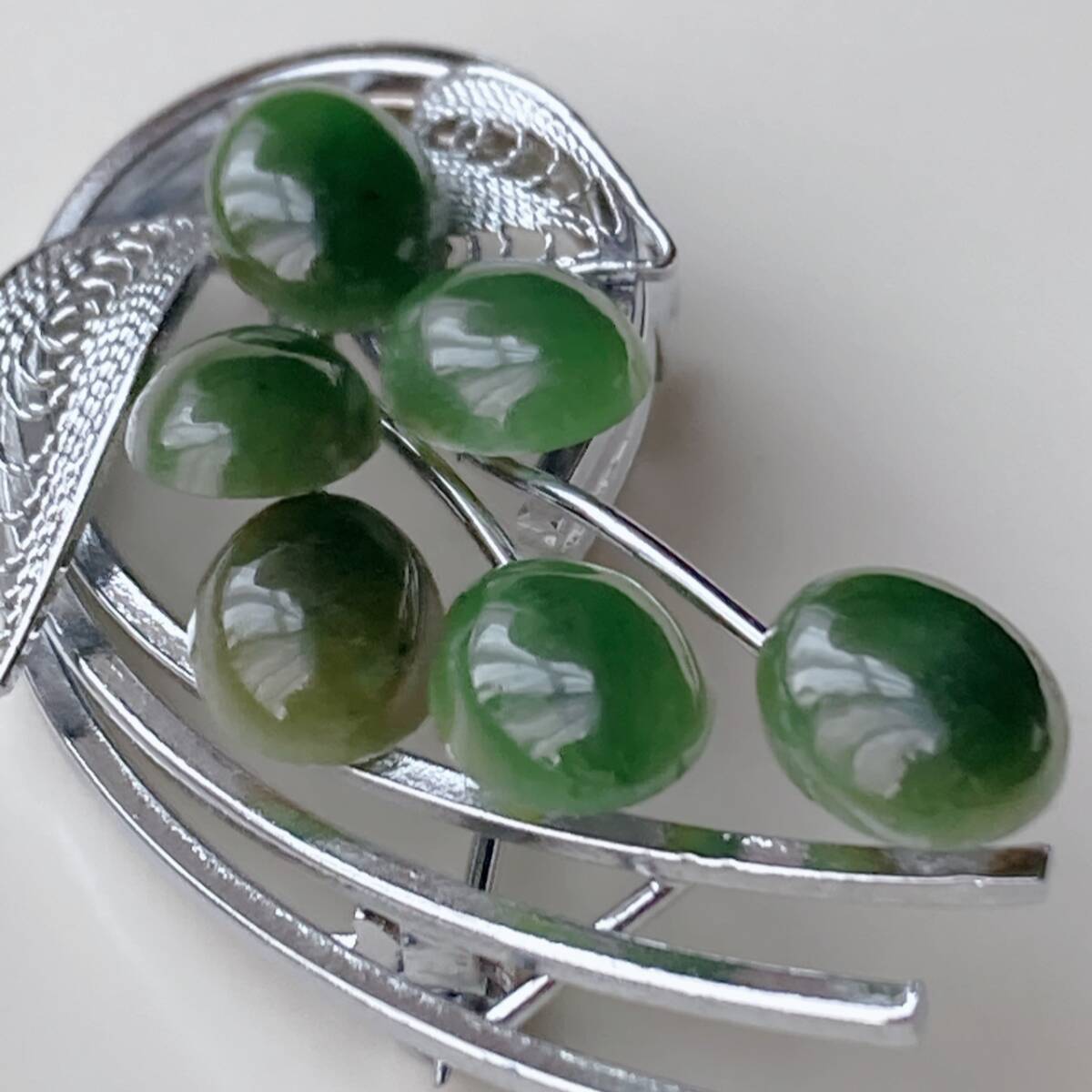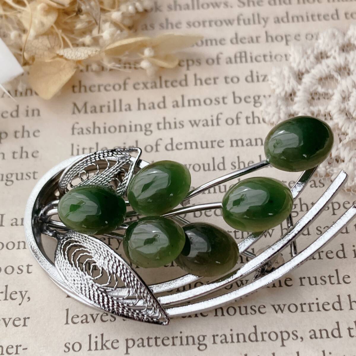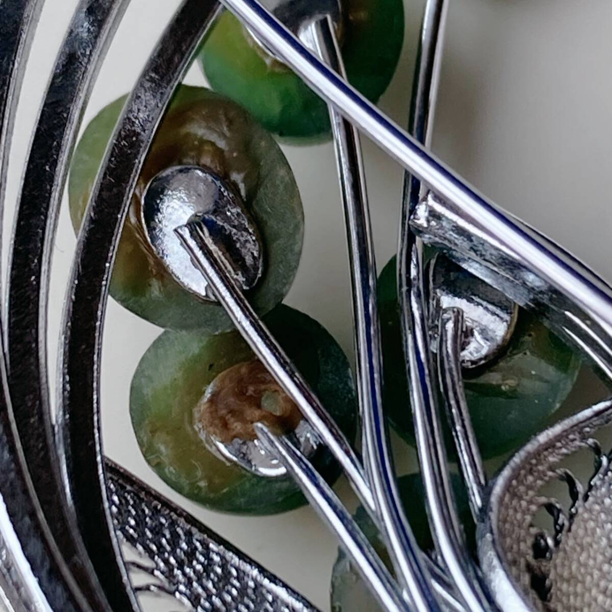 ヴィンテージブローチ 翡翠 グリーン シルバートーン レトロ☆vintage jewelry accessories F0254