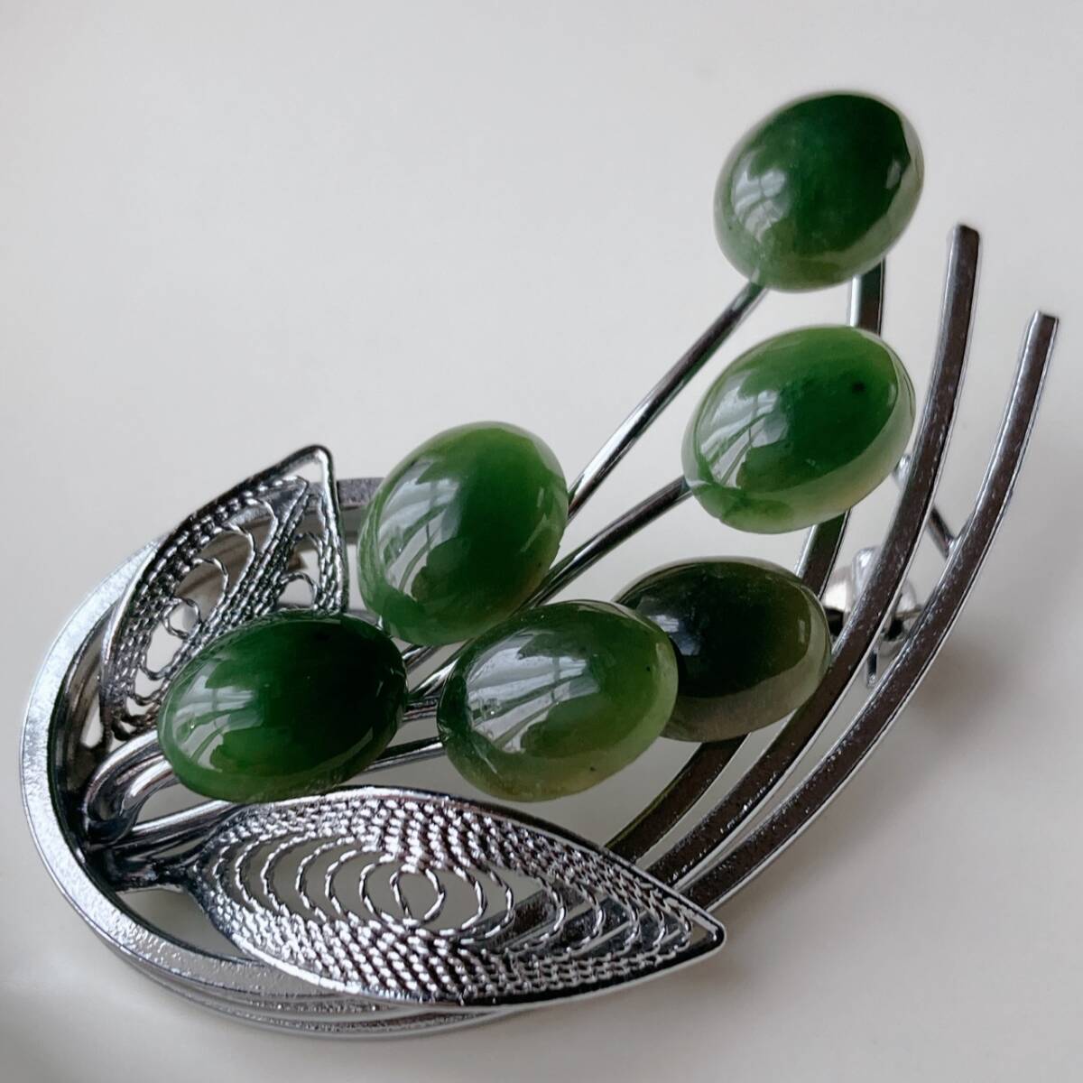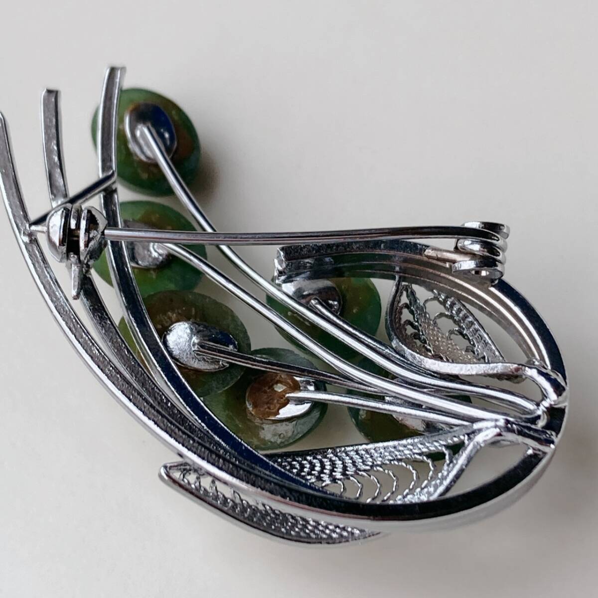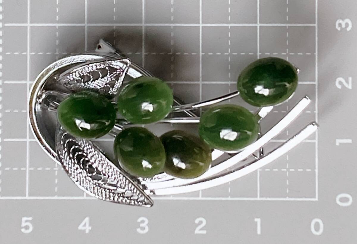 ヴィンテージブローチ 翡翠 グリーン シルバートーン レトロ☆vintage jewelry accessories F0254