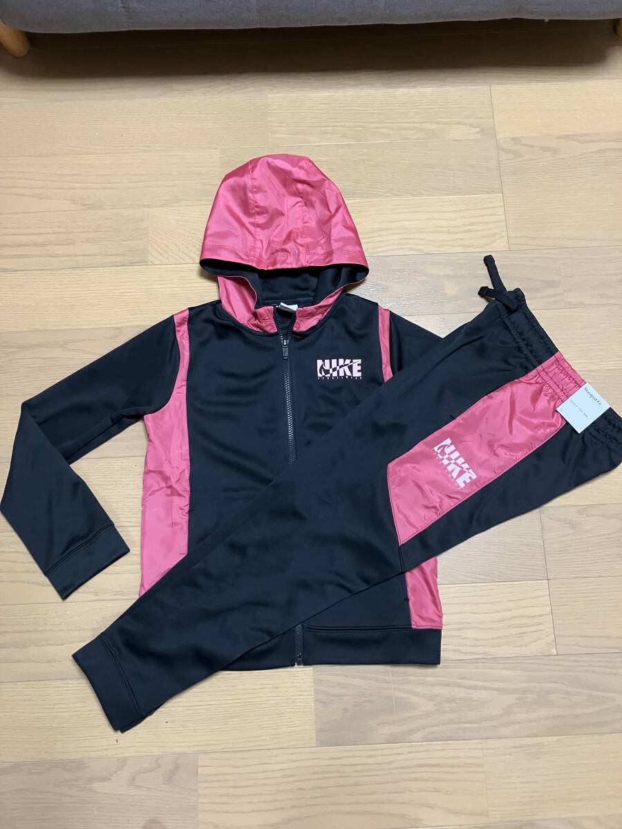 ・新品未使用品です。早いもの勝ち。ノークレーム・ノーリターンでお願いします。在庫処分品です。少々のしわ・汚れなどはお値段にてご理解下さい。・他の商品との同梱発送は出来ません。・ヤフオク以外でも出品いたしております。・1点限りの出品となります。早い者勝ちです。・2番手以降の落札となりましたら、かんたん決済の取り消しにて対応させていただきます。ご理解下さいますようお願いします。・カラー ブラック・サイズ 150㌢ (胸囲69~75)(身長140~150)(胴囲65~69)・素材ポリエステル100%・NIKE JRジャージ上下セット