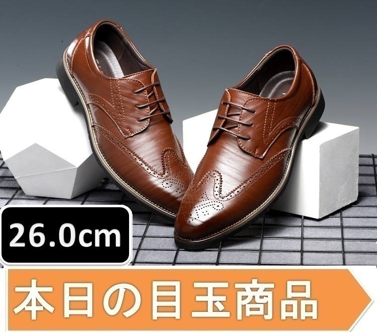 本日の目玉 ☆ メンズ ビジネス レザー シューズ ブラウン サイズ 26.0cm 革靴 靴 カジュアル 屈曲性 通勤 軽量 【230】