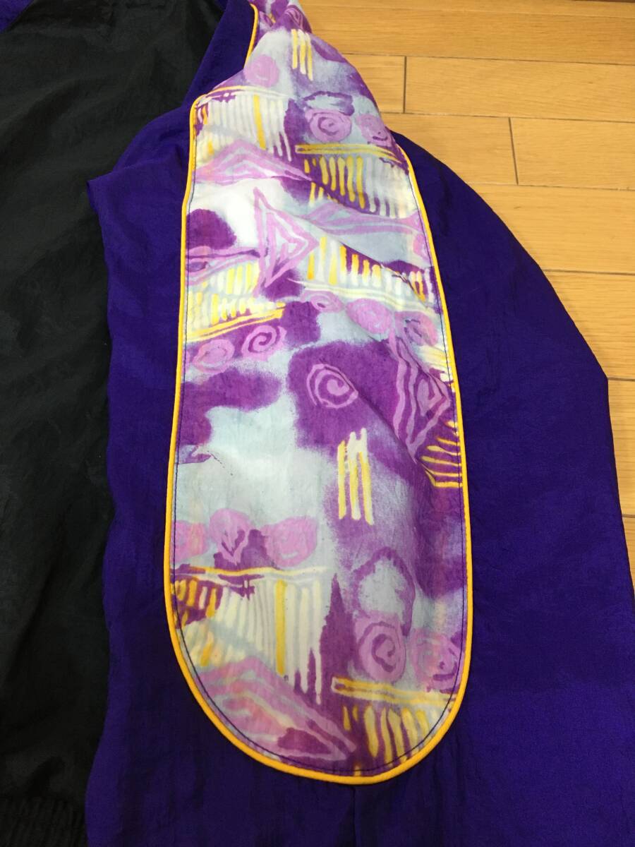 ブラック・パープルベースにこの年代らしい総柄プリントでかわいいデザインです。