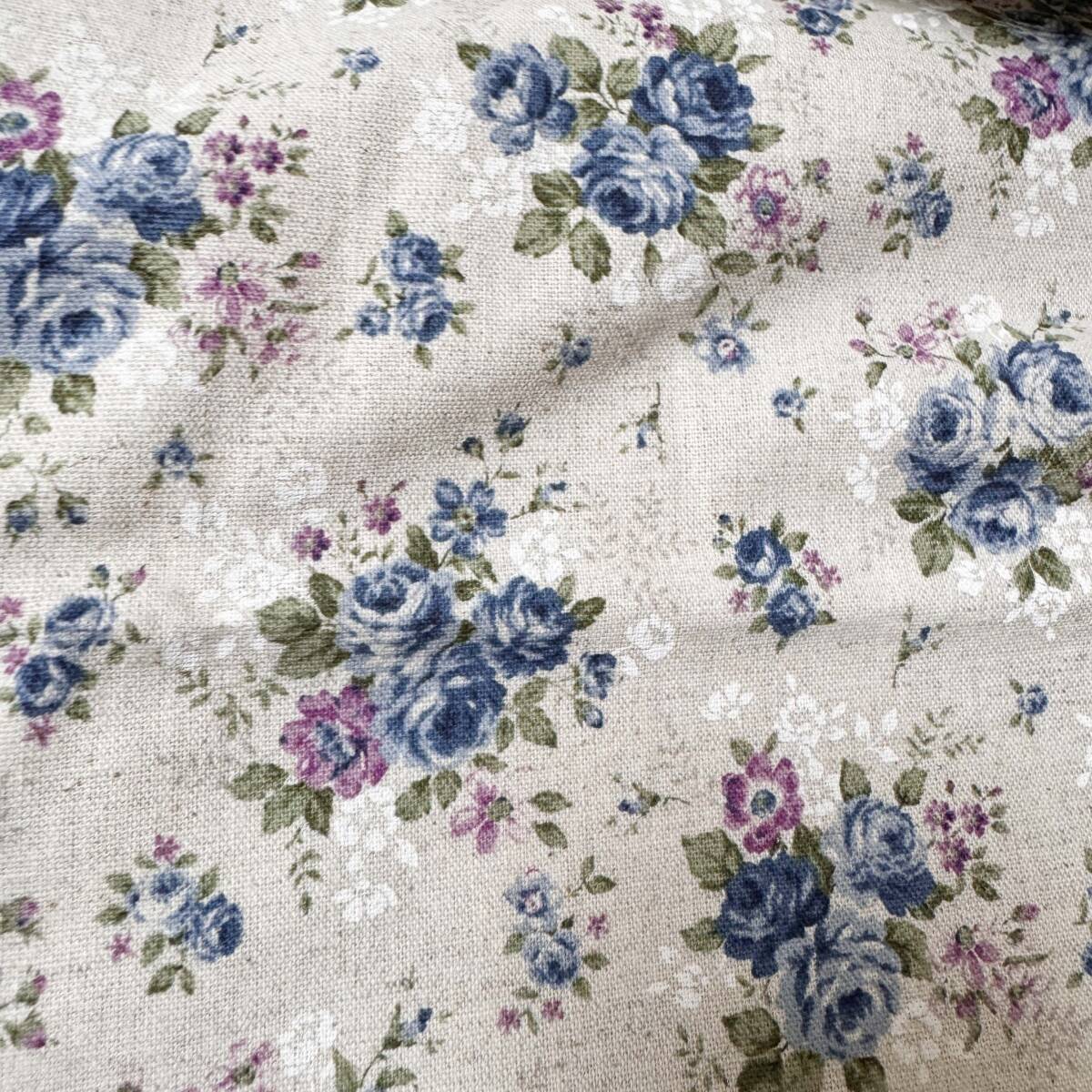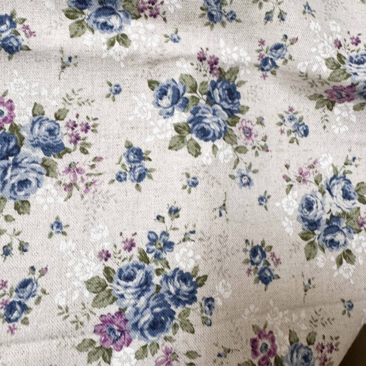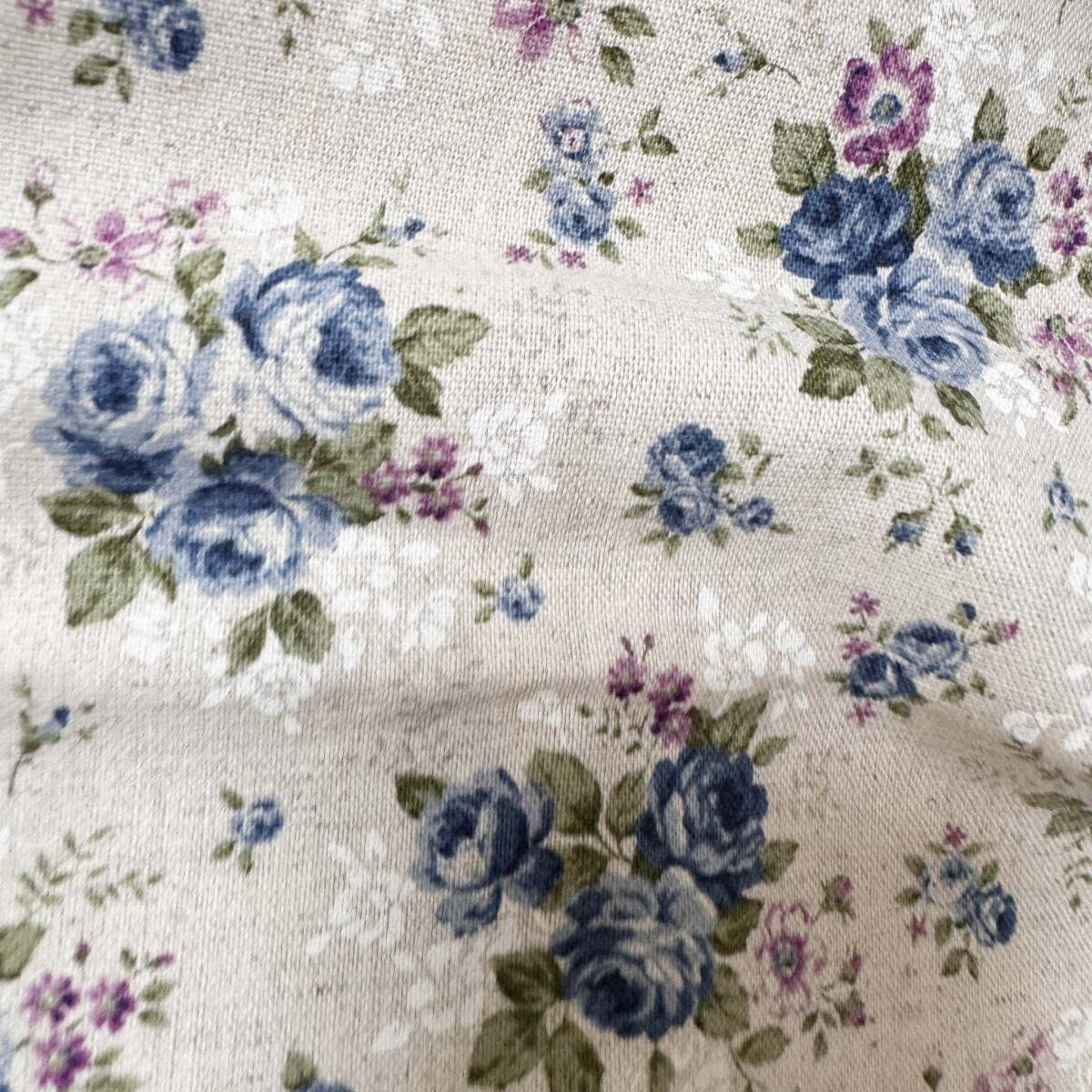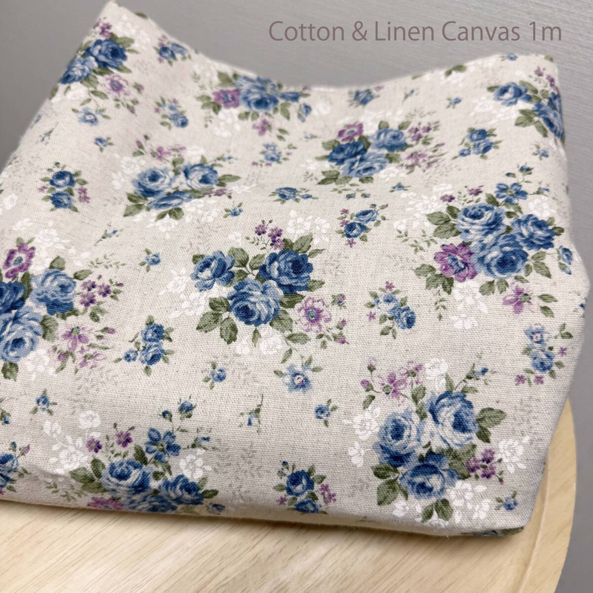 アンティーク風ブルーローズ綿麻キャンバス★コットンリネン生地1m薔薇バラ