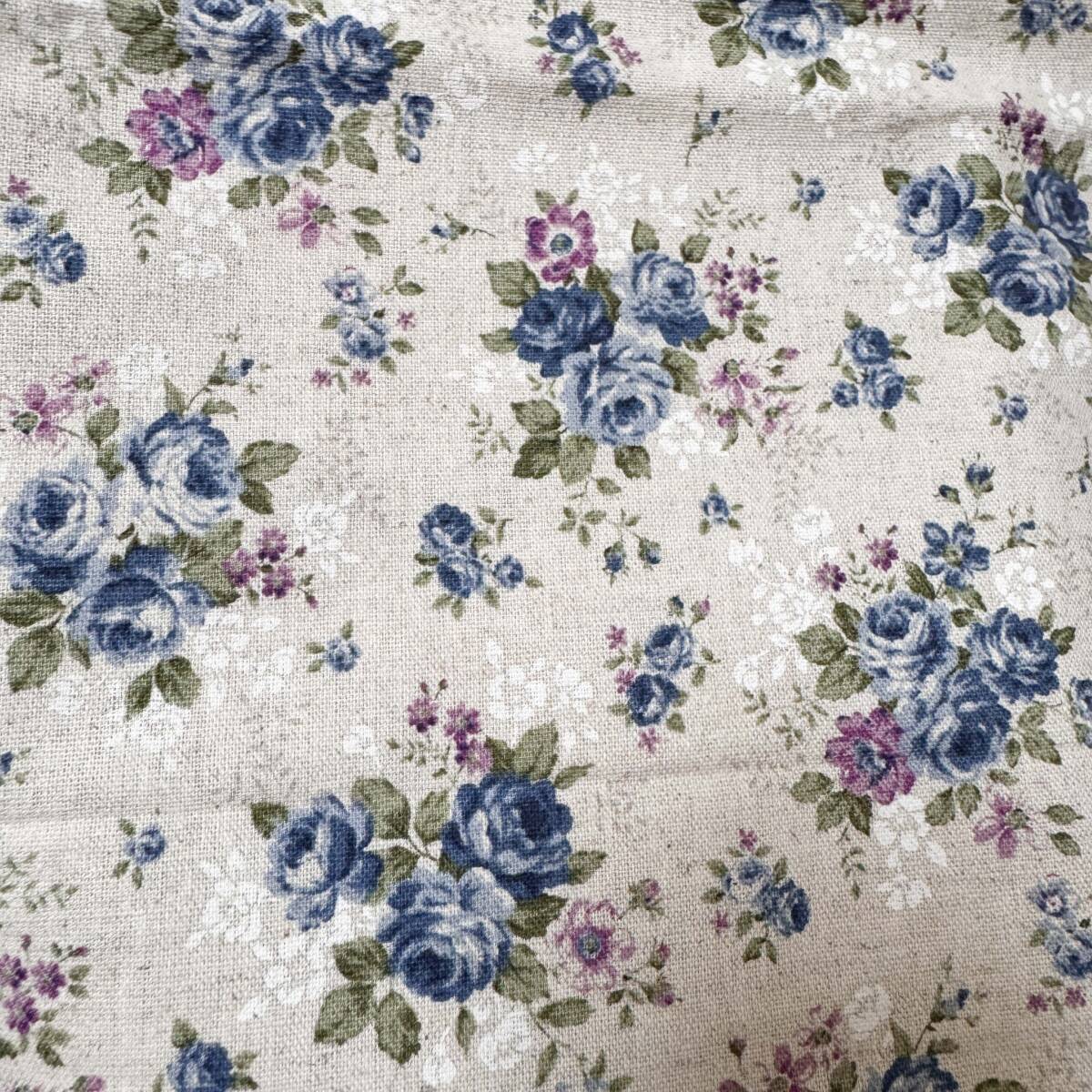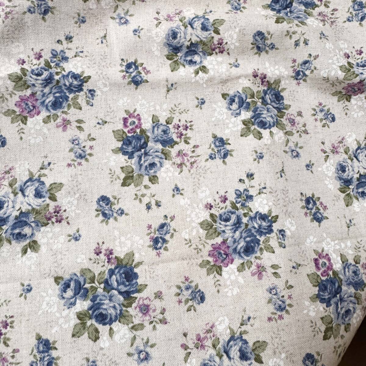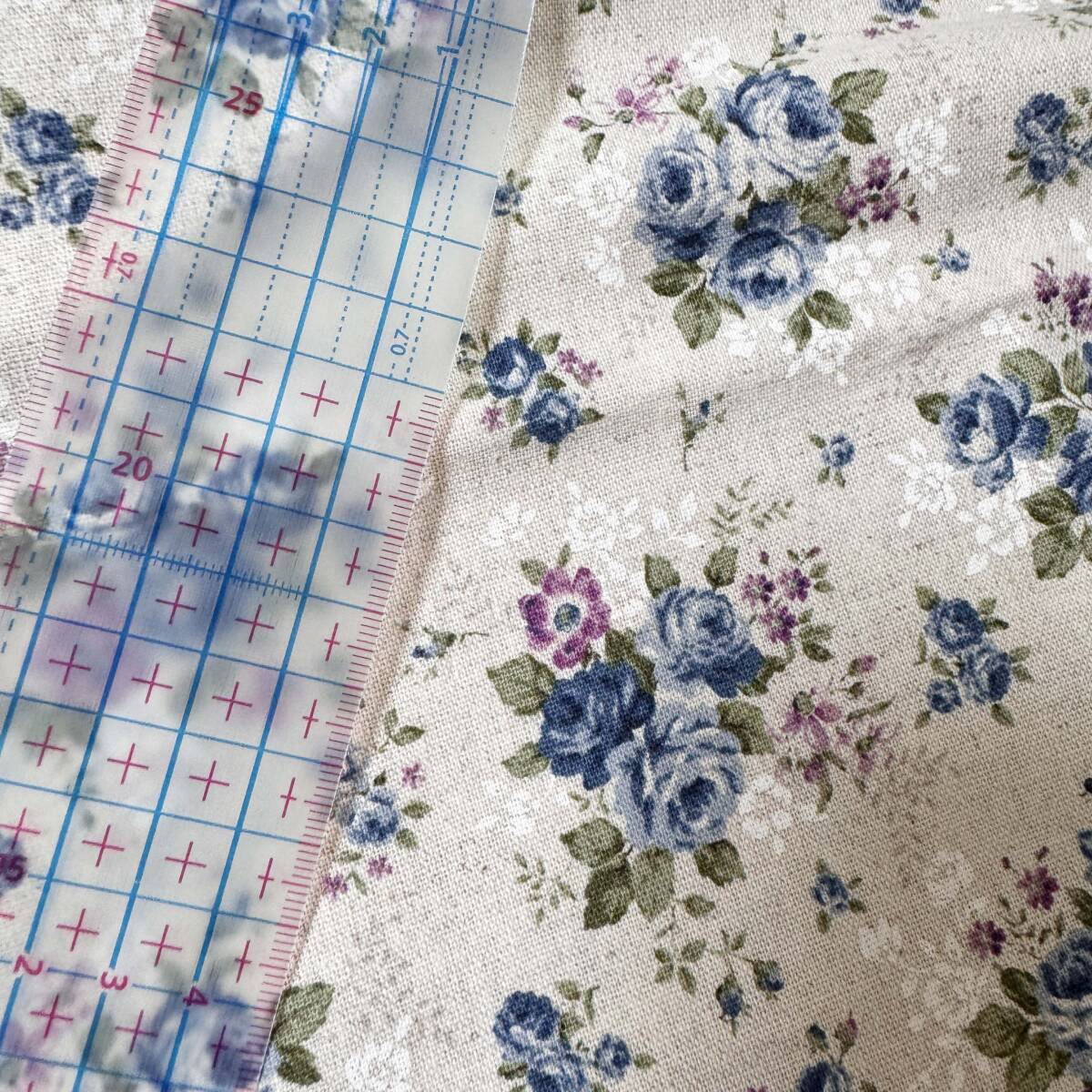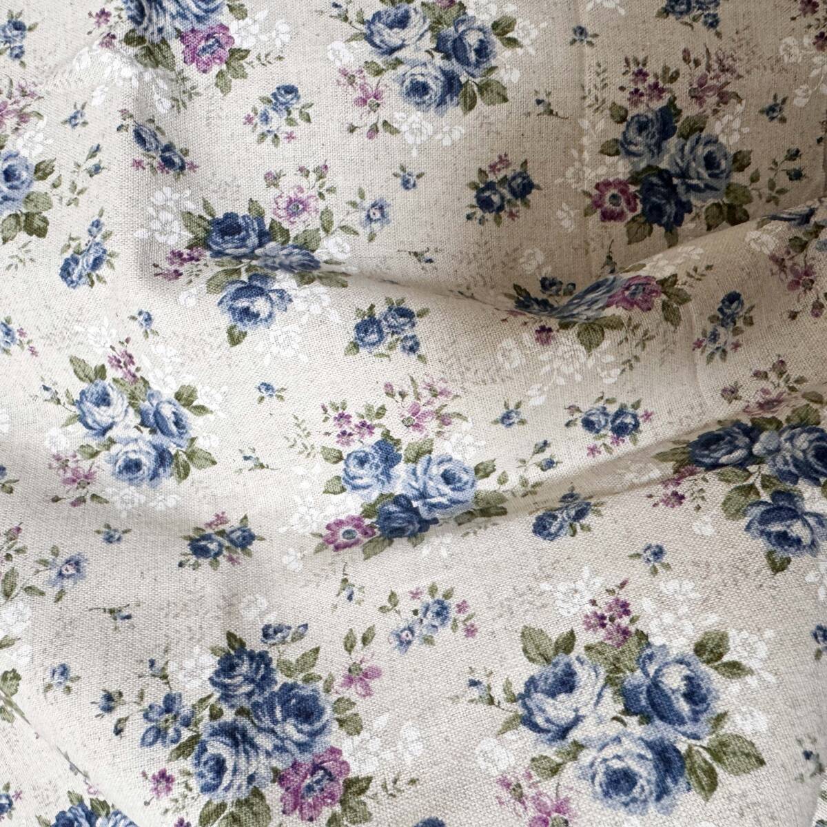アンティーク風ブルーローズ綿麻キャンバス★コットンリネン生地1m薔薇バラ