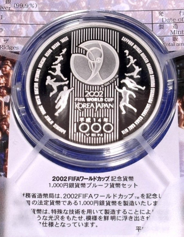 ☆【純銀 FIFA・送料無料】2002 FIFA World Cap 千円銀貨 美品