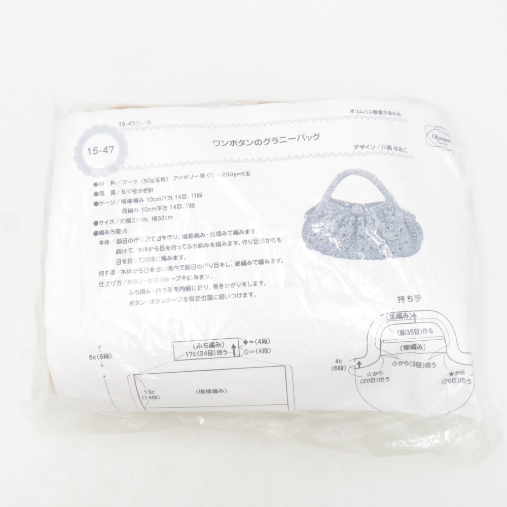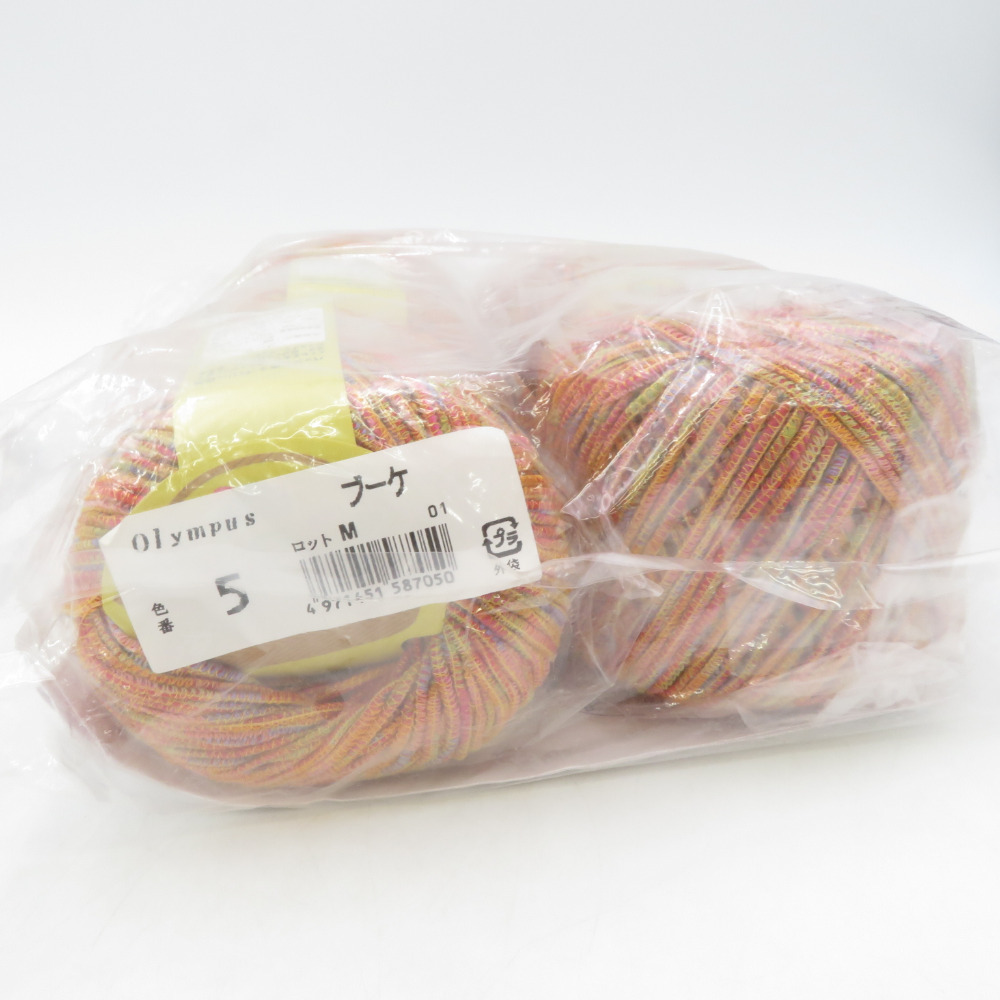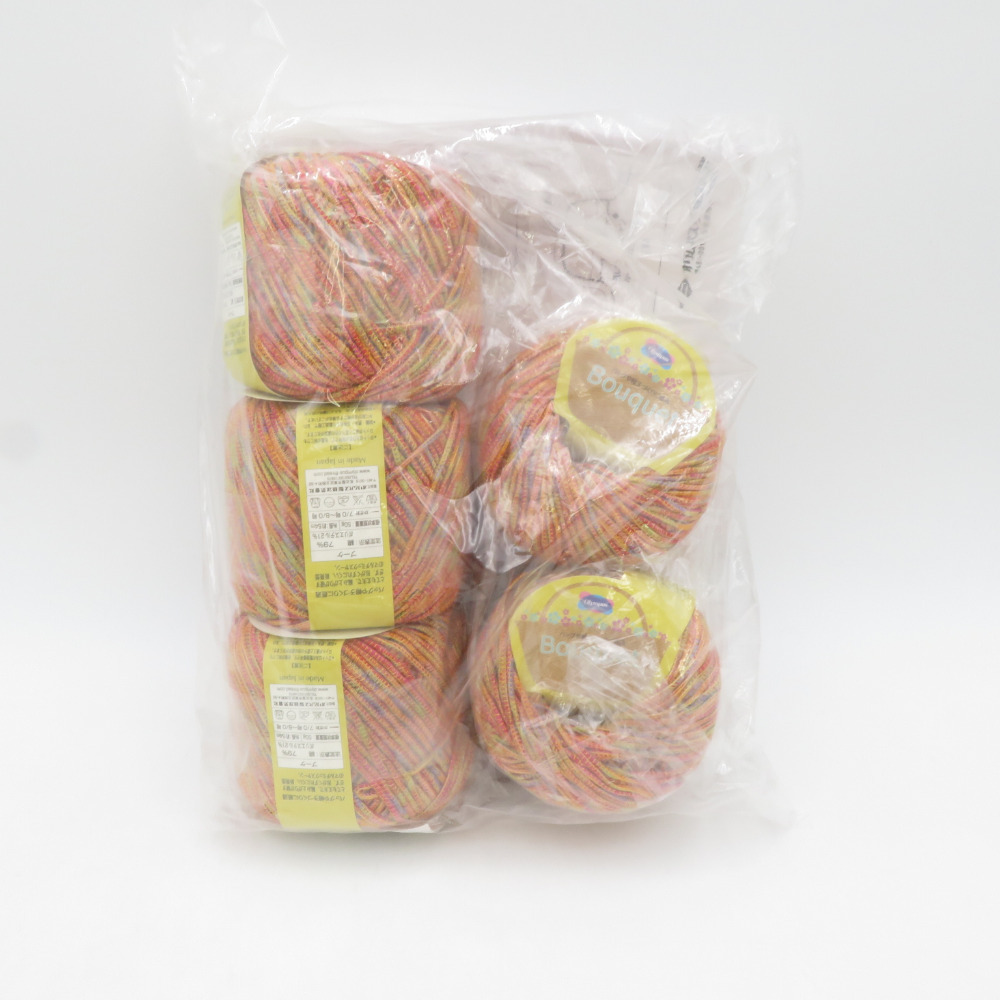 | オリムパス製絲 毛糸 ワンボタンのグラニーバッグ(オレンジ) 着分セット 編み図つき ブーケ 5番色 50g玉巻 5玉 未開封品 未使用品 |