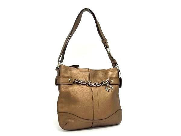 1円 ■美品■ COACH コーチ F19722 レザー ワンショルダーバッグ 肩掛け レディース ブロンズ系 FN6348