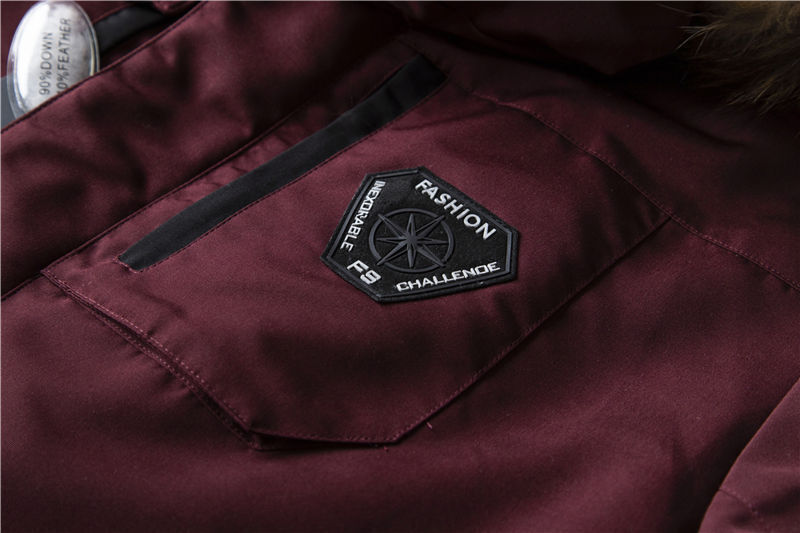 ダウンジャケット メンズ ミドル ファー付き 撥水 暖かい 防風 防寒 厚手 冬 ノーアイロン アウター  ワインレッド/A1434-XL