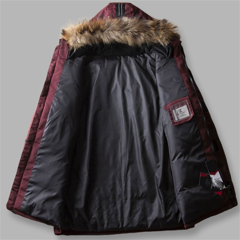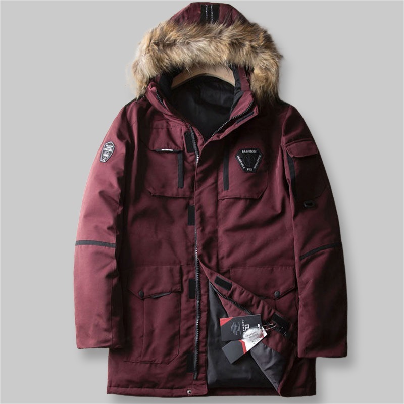 ダウンジャケット メンズ ミドル ファー付き 撥水 暖かい 防風 防寒 厚手 冬 ノーアイロン アウター ワインレッド/A1434-XL