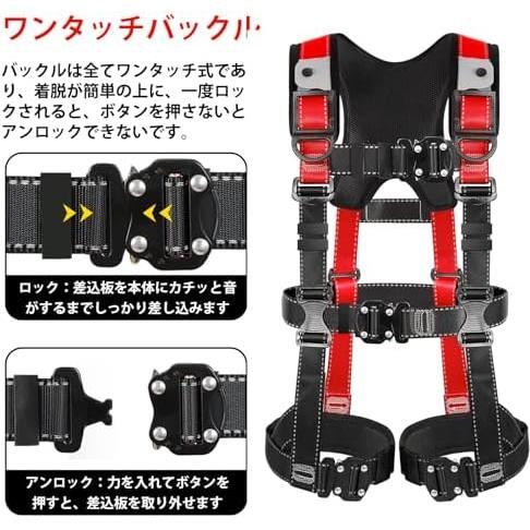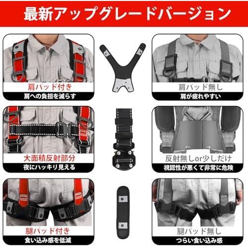 反射_レッド [TT TRSMIMA] フルハーネス 新規格 セット フルハーネス安全帯 - 安全保護 ワンタッチ バックル 脱着簡単 ハーネス安全帯 ラン