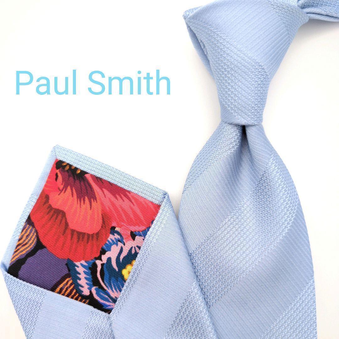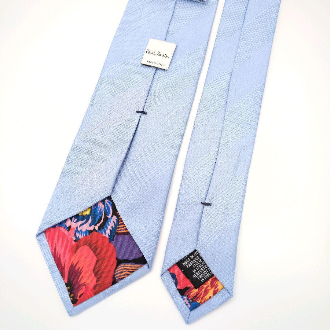 【イタリア製】ポールスミス ネクタイ 水色 無地 ソリッド ストライプ 高級