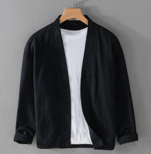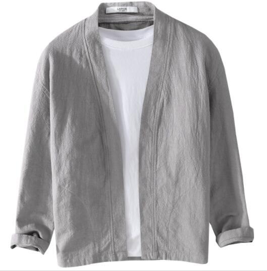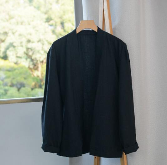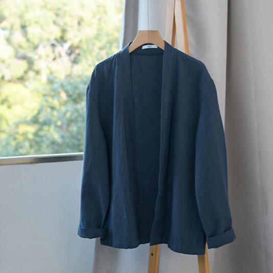 新作綿麻 カーディガン メンズ 長袖 リネン 麻 無地 はおり 薄手カーディガン 前開き ライトアウター 通勤 カーデ  ブルーXL