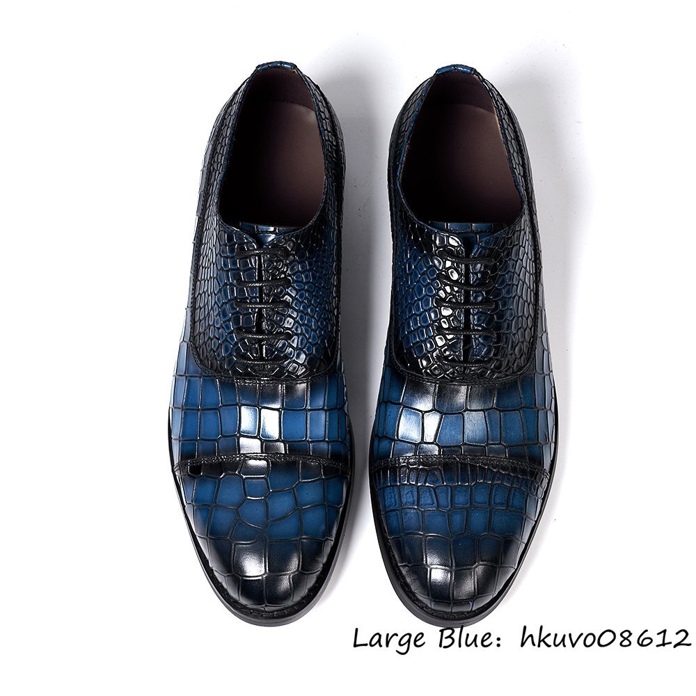 最高級■メンズシューズ ビジネスシューズ 本革 レザーシューズ 鰐柄 職人手作り 紳士靴 牛革革靴 フォーマル 宴会 結婚式 ブルー 24.5cm