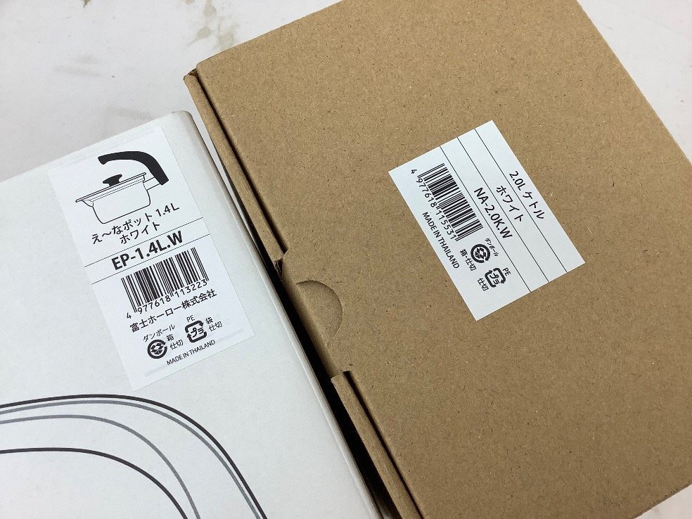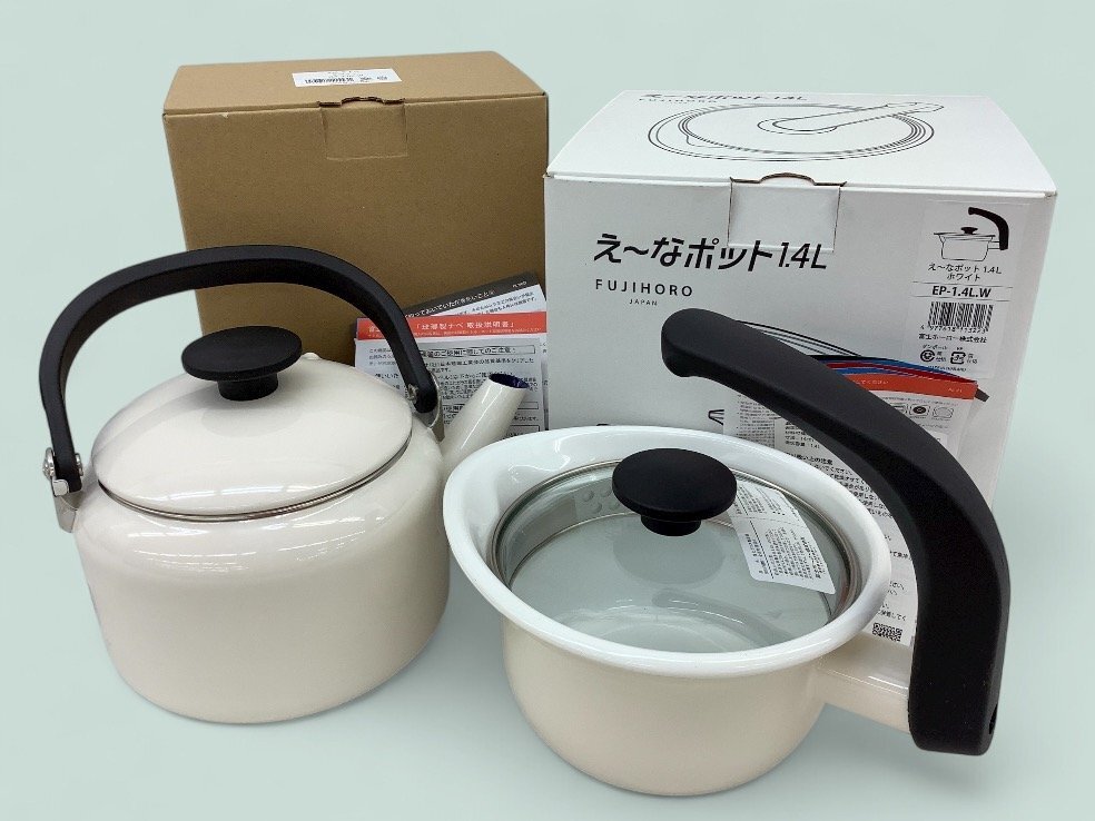 富士ホーロー え~なポット1.4L/2.0L ケトル EP-1.4L.W/NA-2.0K.W 2点まとめ ACB 未使用品