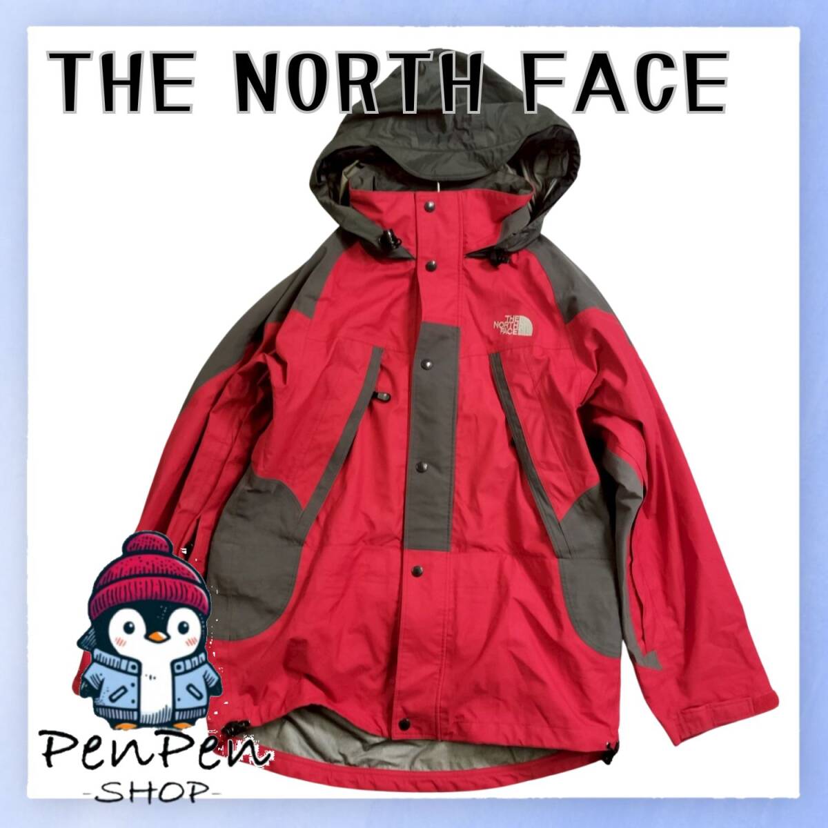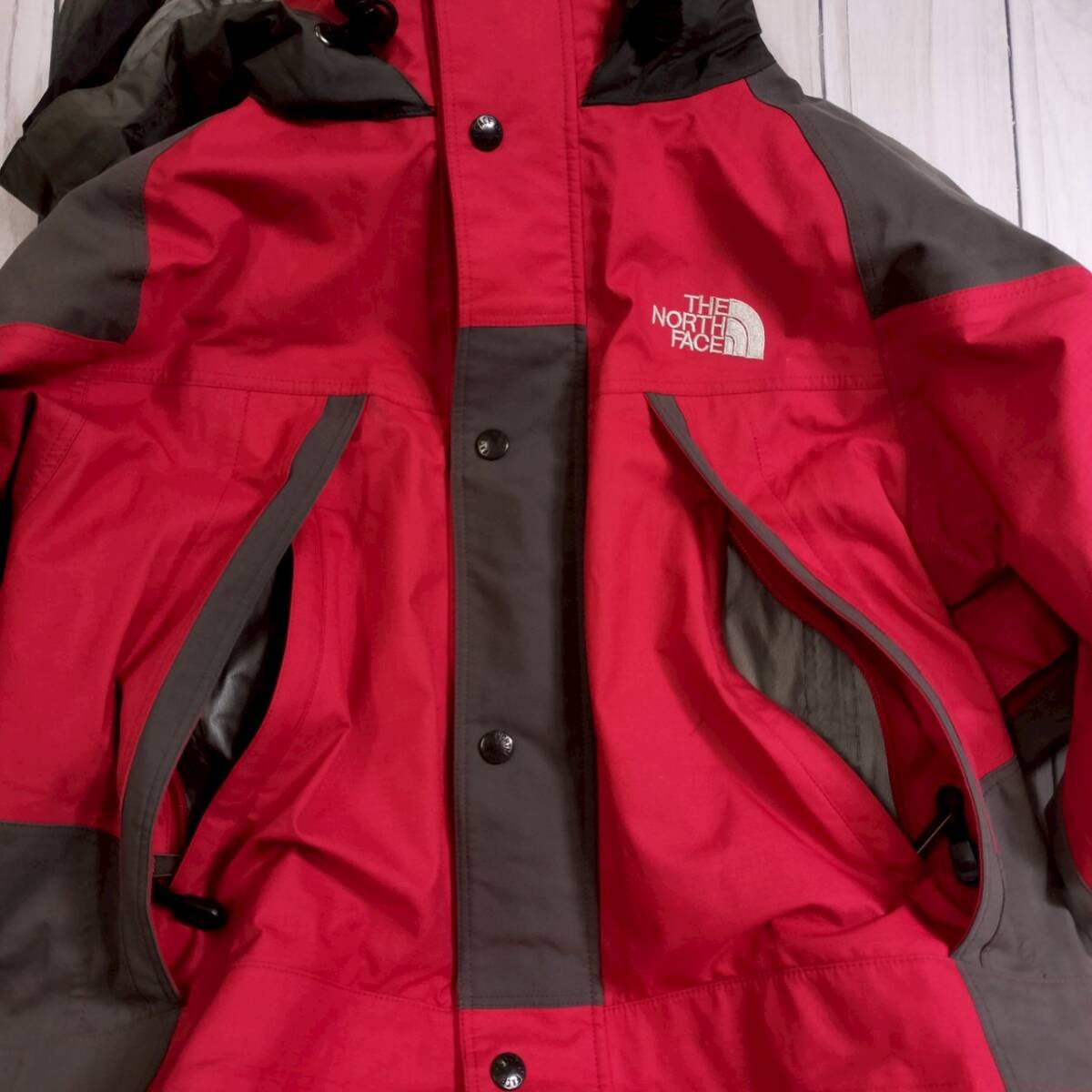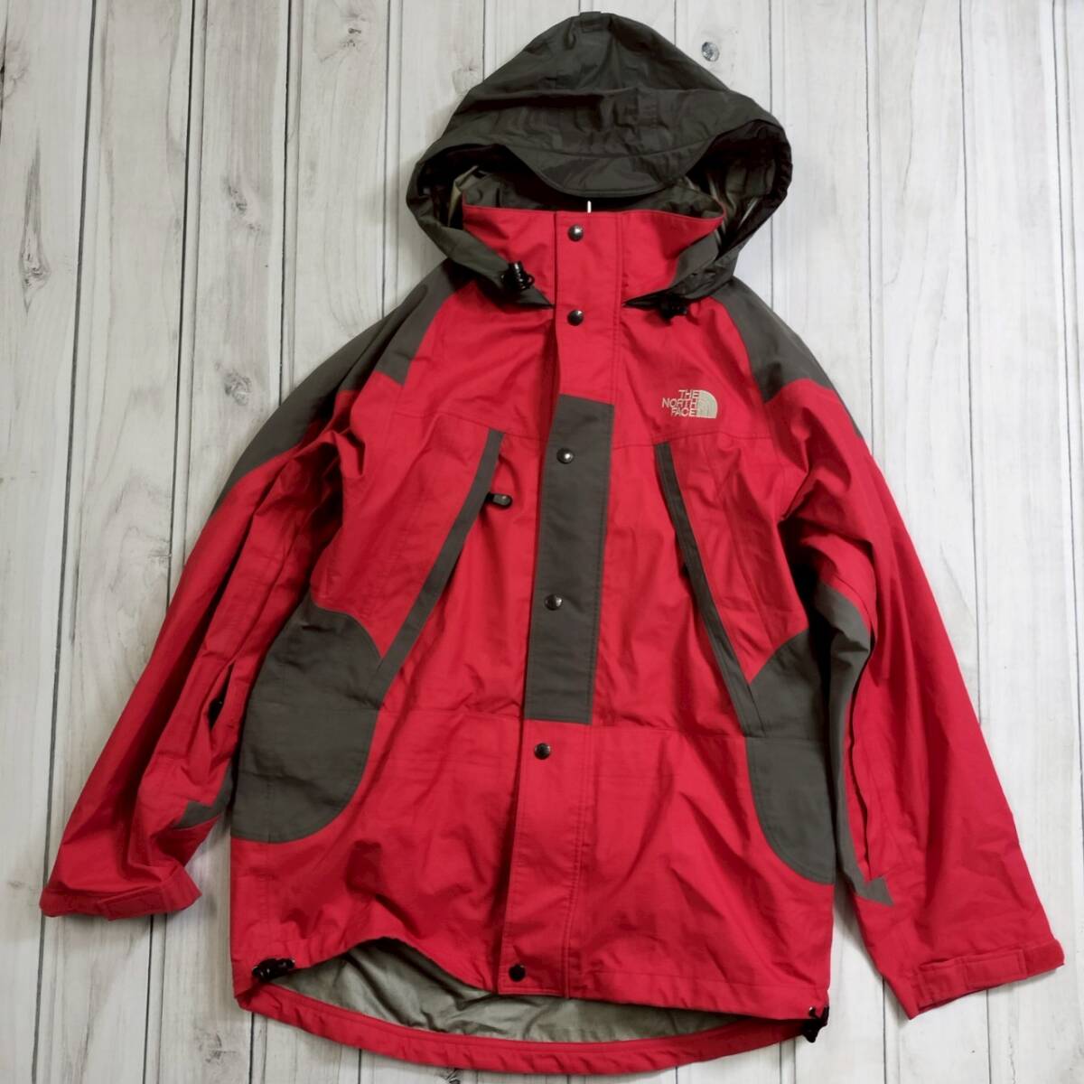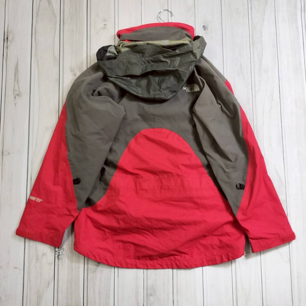 THE NORTH FACE ノースフェイス メンズ マウンテンジャケット GORE-TEX ゴアテックス レッド×グレー フード付 日本製 Lサイズ 防水 防寒