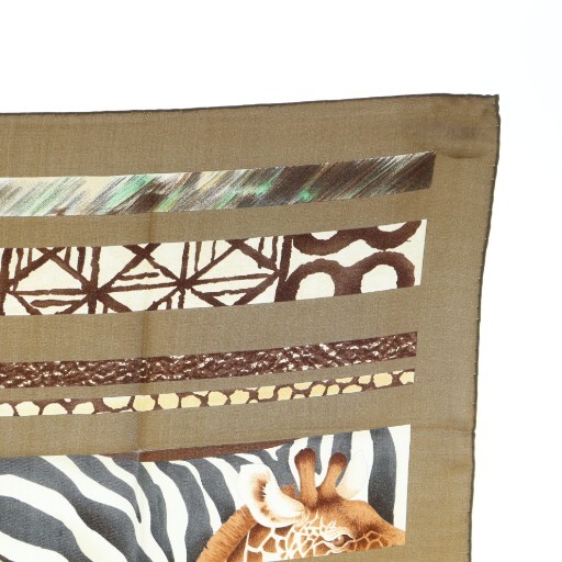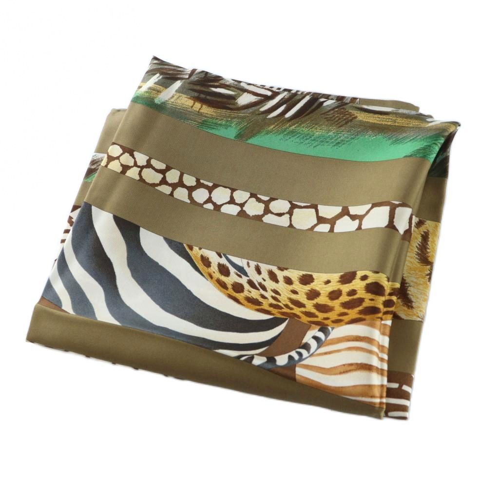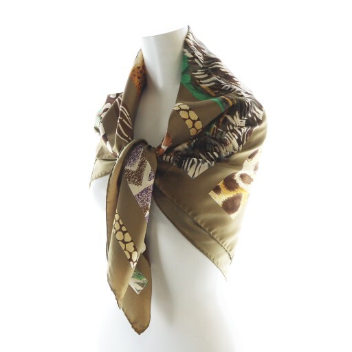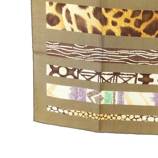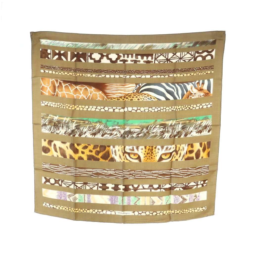 サルヴァトーレフェラガモ Salvatore Ferragamo 大判スカーフ ストール 総柄 アニマル柄 ロゴ 絹 シルク 茶 ブラウン ■GY11 /MQ
