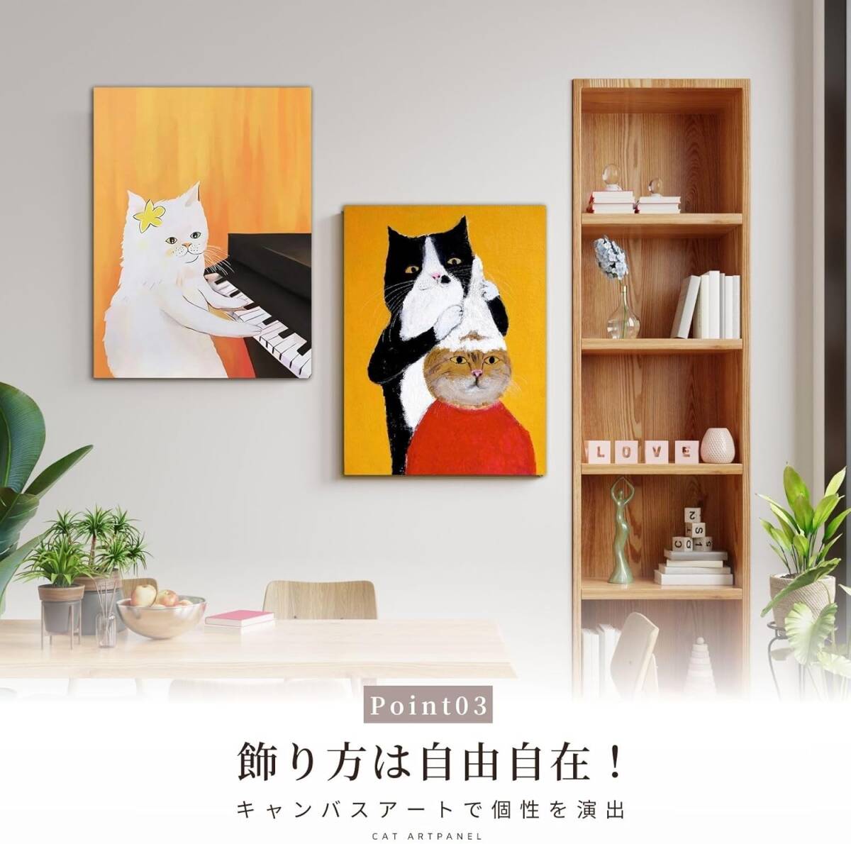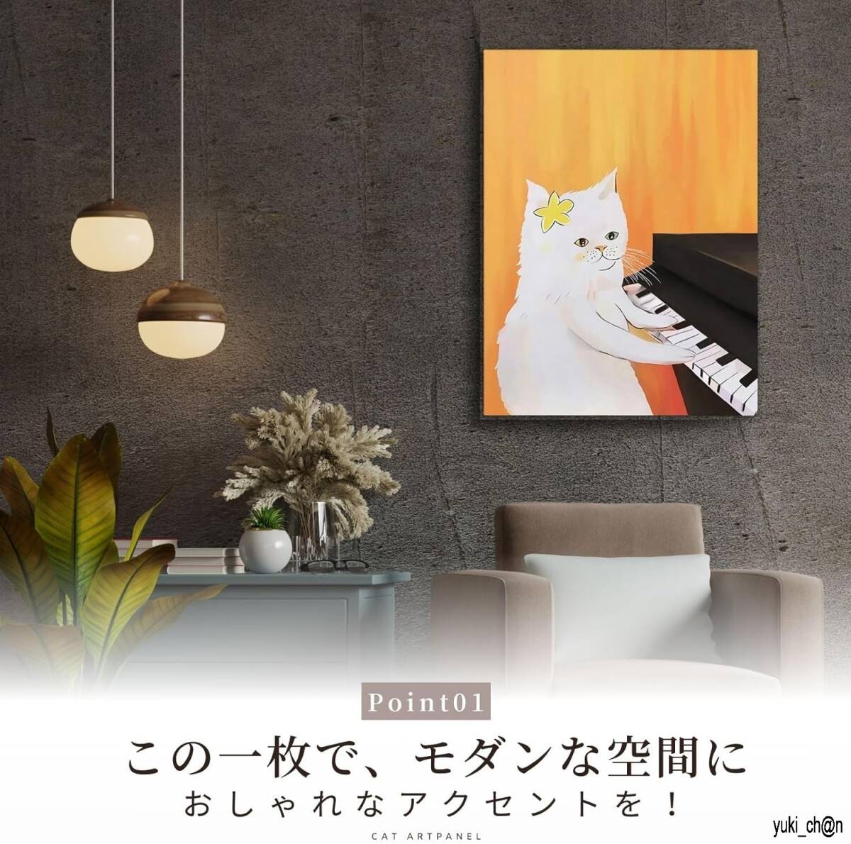 アートパネル 猫のピアノ演奏 30x40 おしゃれ モダン 絵画 インテリア ポスター キャンバス アート 猫 ネコ ユーモア 擬人化 プレゼント