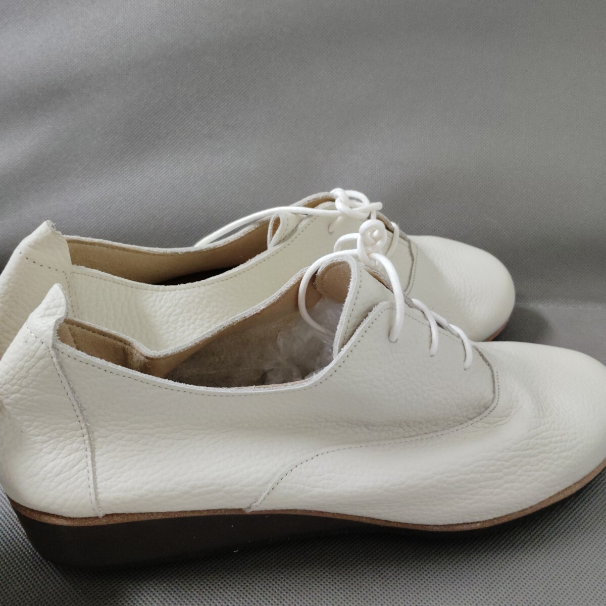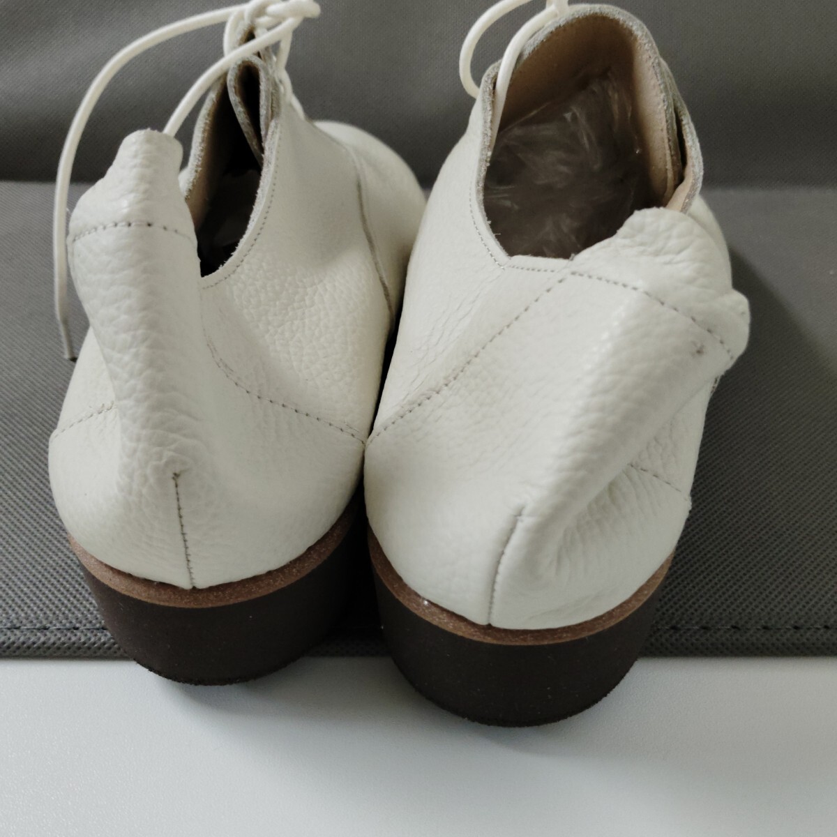 柔らかいレザー素材が足にフィットし、長時間の着用でも快適です。