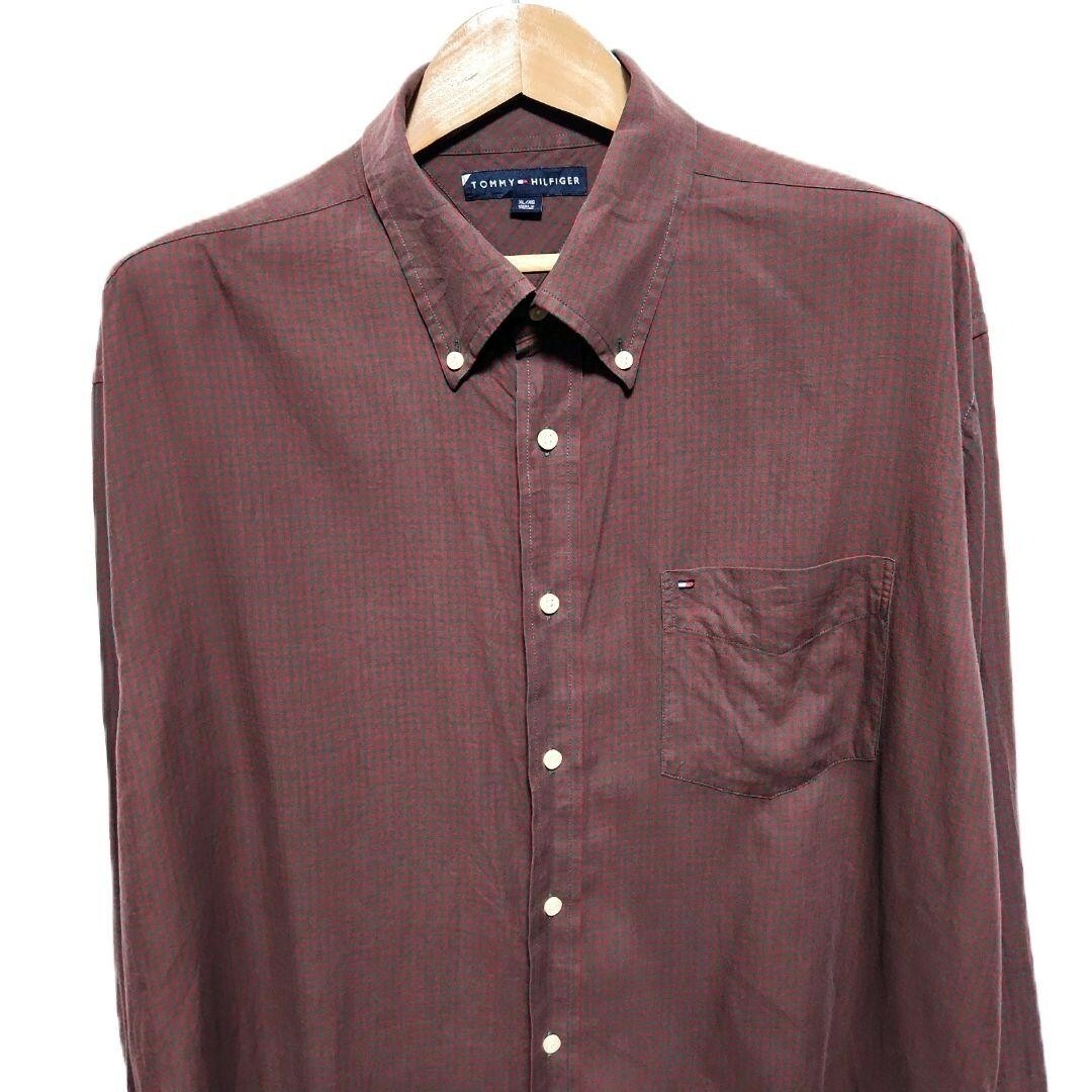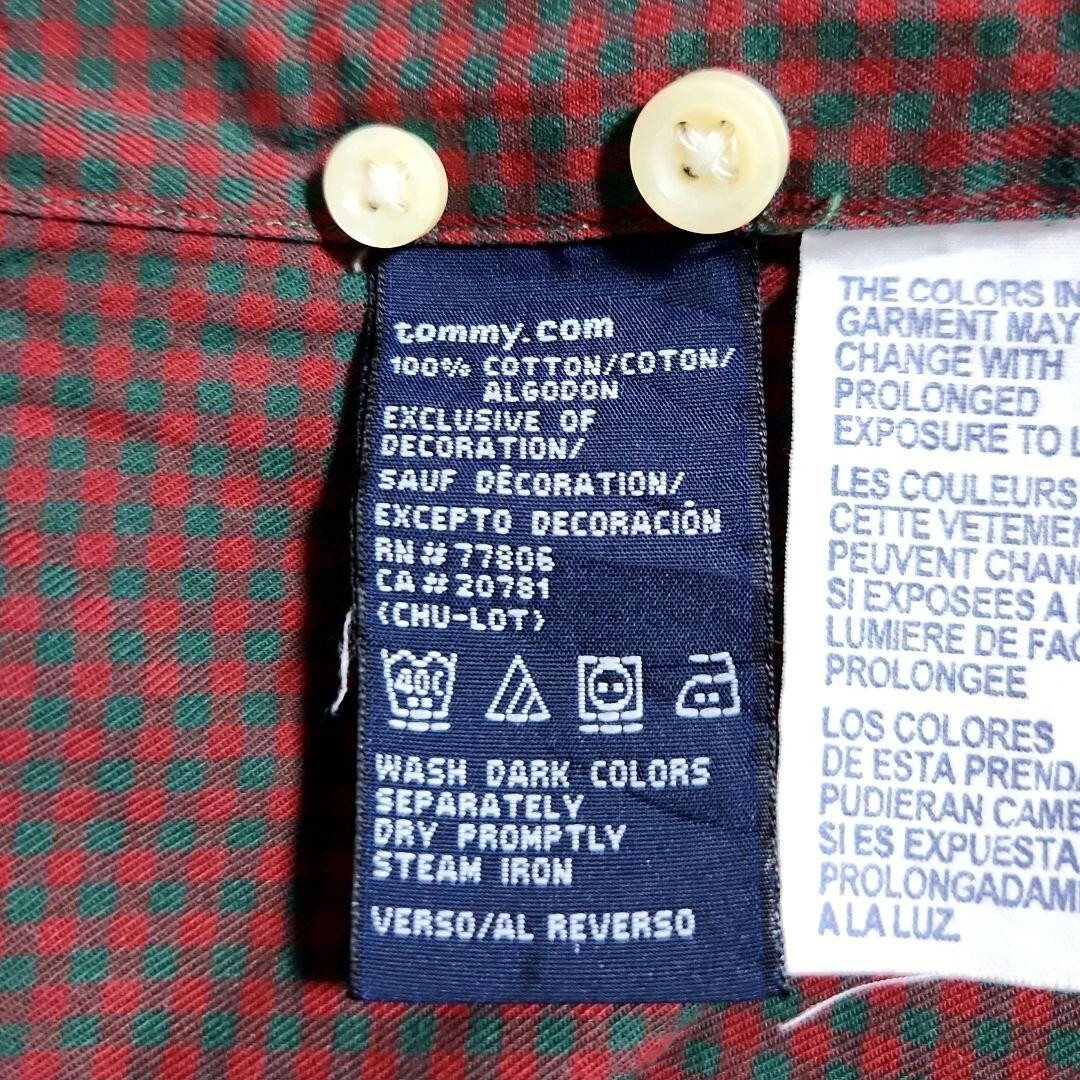 TOMMY HILFIGER ワインレッド グリーン チェックシャツ XL