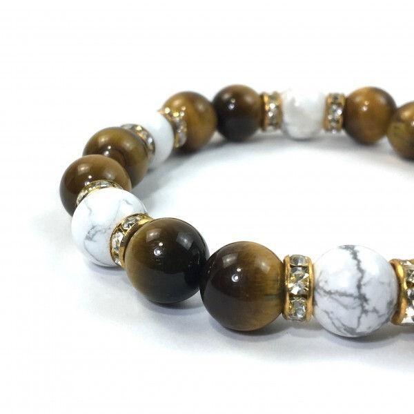 レッドタイガーアイ×ハウライト パワーストーン ブレスレット 天然石 10mm (ゴールド) メンズ・レディース 金運 仕事運 願望成就