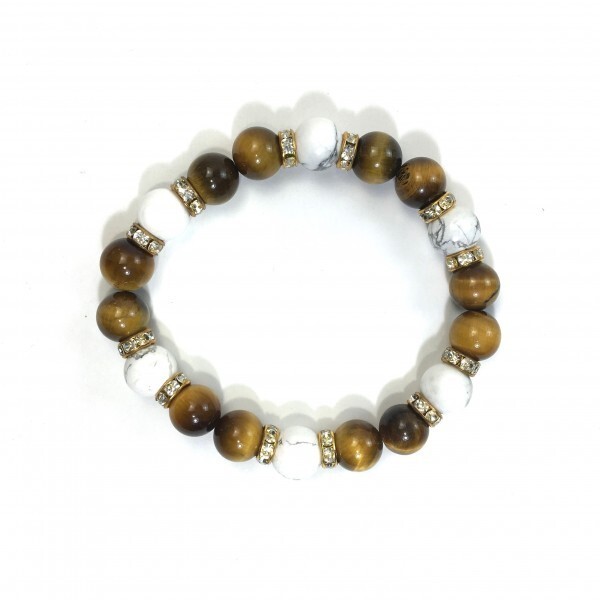 こちらは、レッドタイガーアイとハウライトを組み合わせたブレスレットです。間にはロンデルを挟み高級感あるデザインに仕上がっています。石大きさは腕にも馴染みやすいように10mm玉で内径約17cm(伸可能)です。数に限りがございますので気になる方はお早めにどうぞ。サイズ調節も可能ですのでサイズ調節の場合は取引ナビにてご一報くださいませ。(サイズ調節無料です)