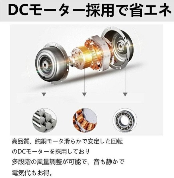 静音に優れたDCモーターで羽を回転。密閉空間の換気対策にも最適。