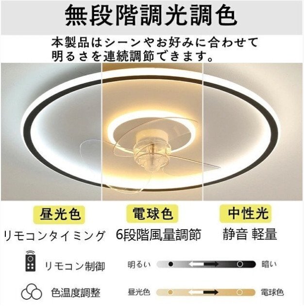 シーリングファンライト おしゃれ 調光調色 led 薄型 北欧 リモコン操作 シーリングライトリビング APP対応 風量調節 扇風機 寝室 (A187)
