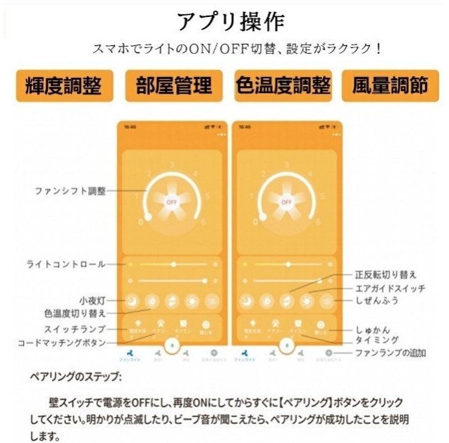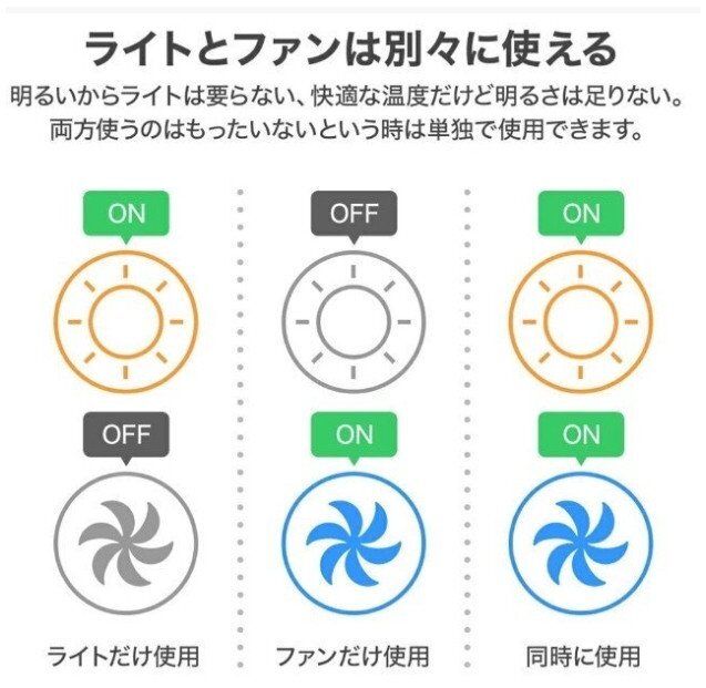 ライト・ファンそれぞれ独立運転可能、和室、寝室、居間、書斎、オフィスや、仕事場など様々な場所に適切です。
