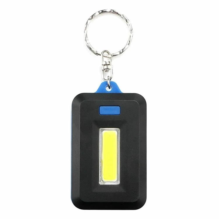 ◆キーホルダーLEDライト COBライト 明るい SOS点灯モード カラビナ付き 乾電池使用 コンパクト 軽量 キャンプ アウトドア 夜間作業 防水 防災 緊急時 停電対策【ブルー】KCOB303