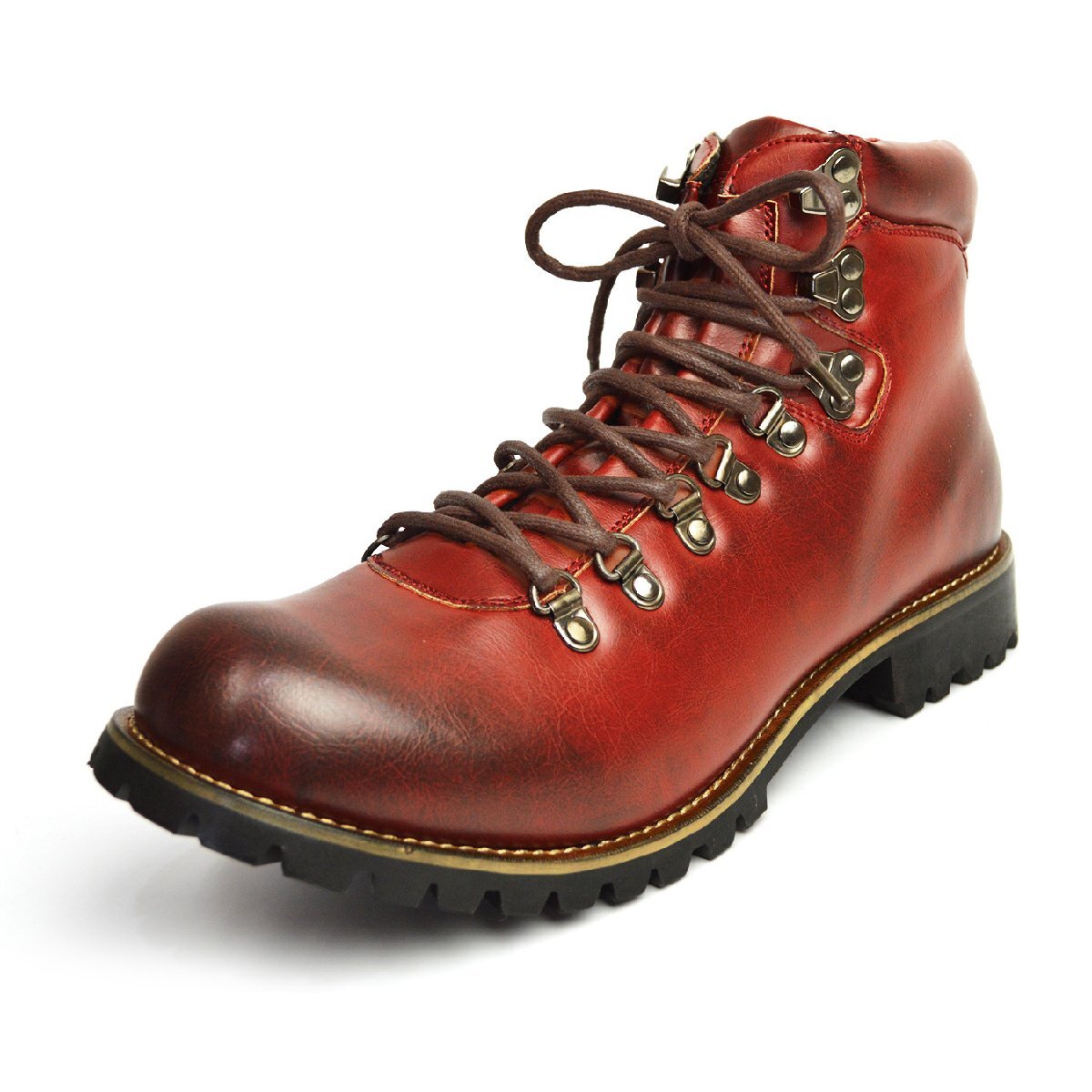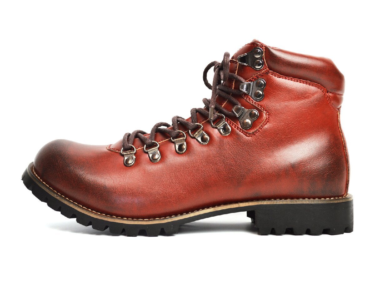 新品■25.5cm メンズ ブーツ マウンテンブーツ ワークブーツ ショートブーツ 幅広 サイドジッパー 替え紐つき レース 男 靴 メンズシューズ