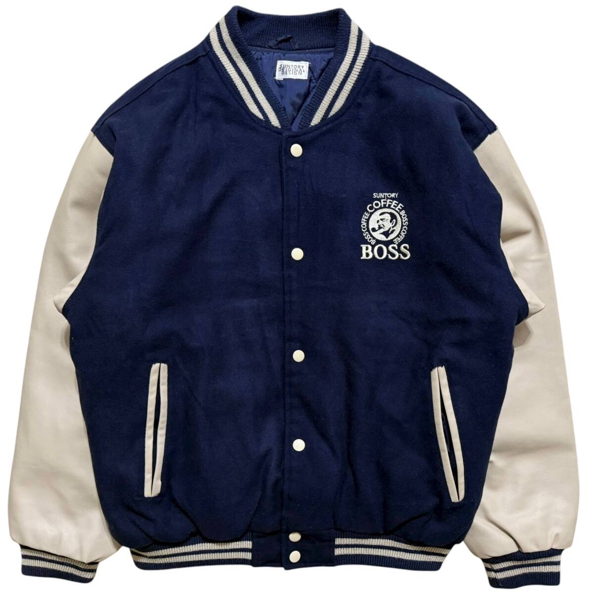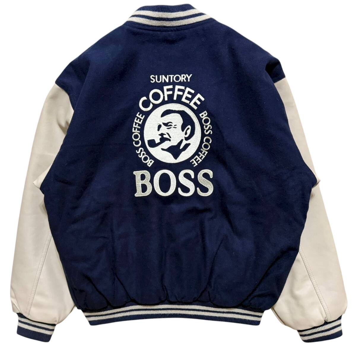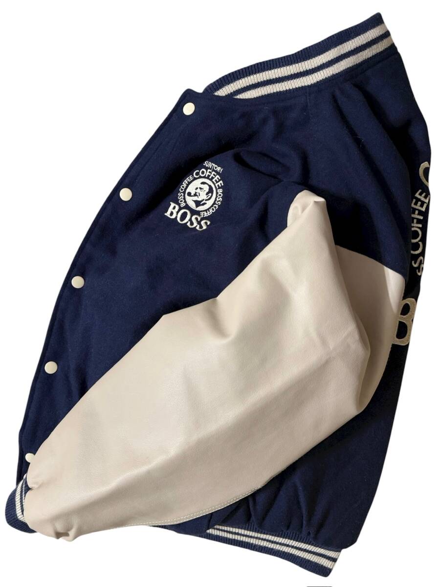 SUNTORY サントリー BOSS ボス 袖革 スタジャン スタジアムジャンパー L相当 ネイビー/アイボリー